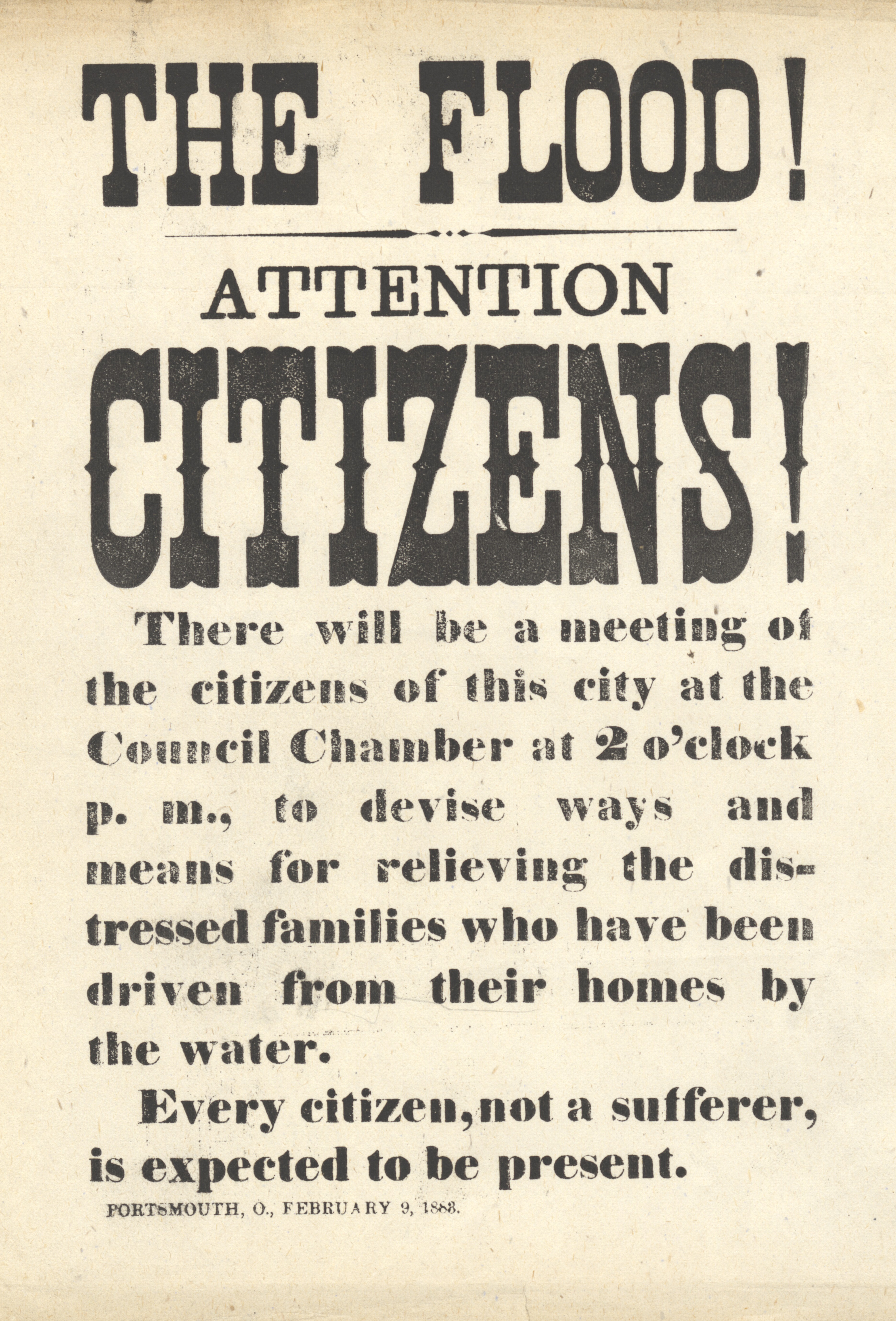unknown, “The Flood! Poster of 1883,” Scioto County Public Library Local History Digital Collection, accessed December 7, 2025, https://www.sciotolibrary.org/history/items/show/18632.