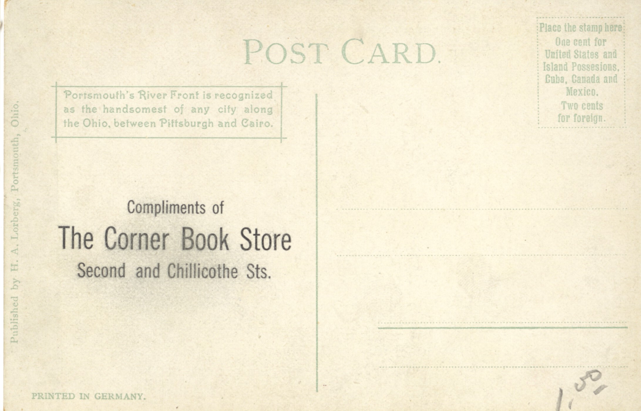 H. A. Lorberg, publisher, “Portsmouth On The Ohio,” Scioto County Public Library Local History Digital Collection, accessed December 17, 2025, https://www.sciotolibrary.org/history/items/show/18643.