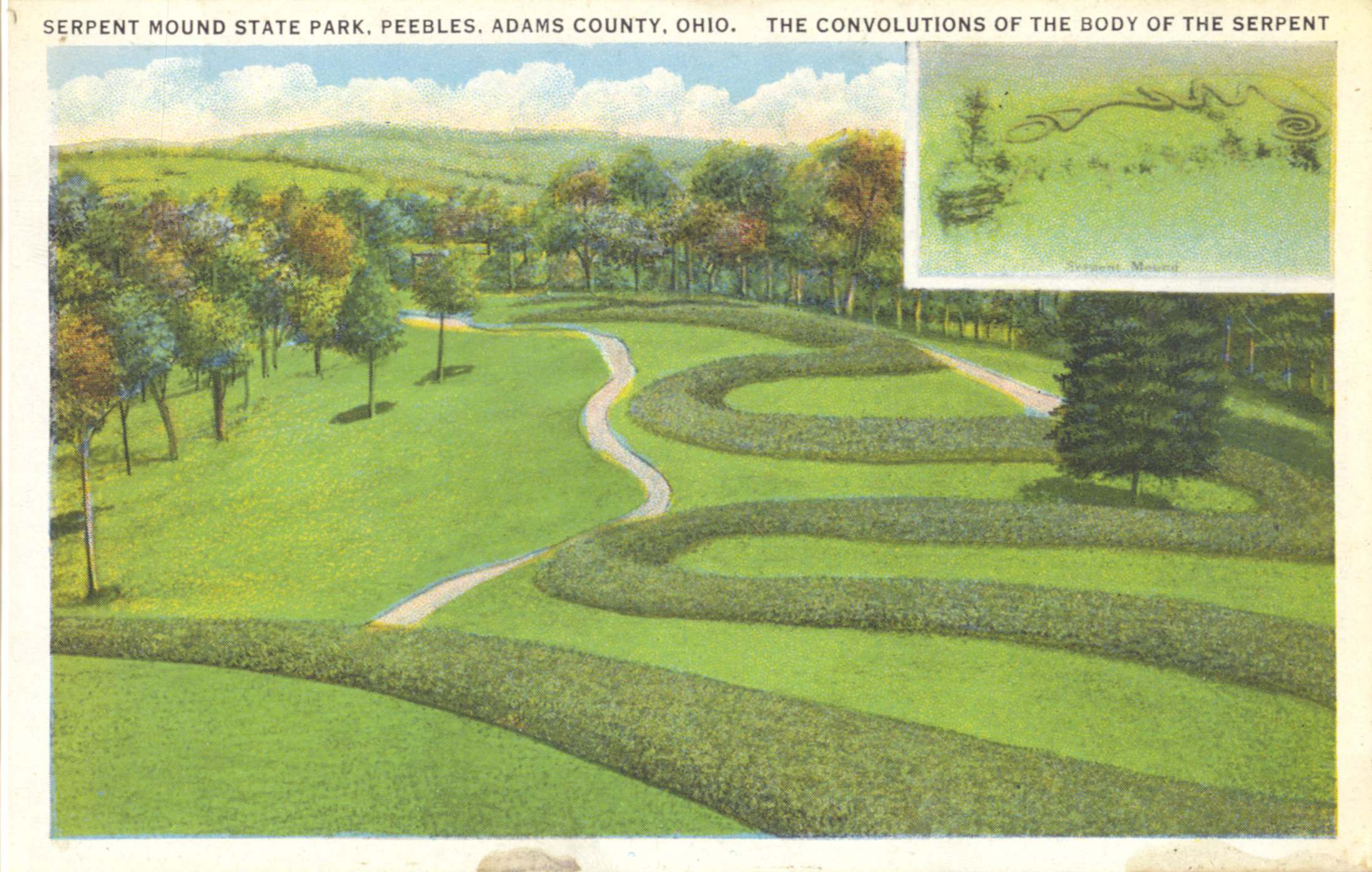 - Colorized photo image of Serpent Mount State Park, Peebles, Adams County, Ohio. The convolutions of the Body of the Serpent.