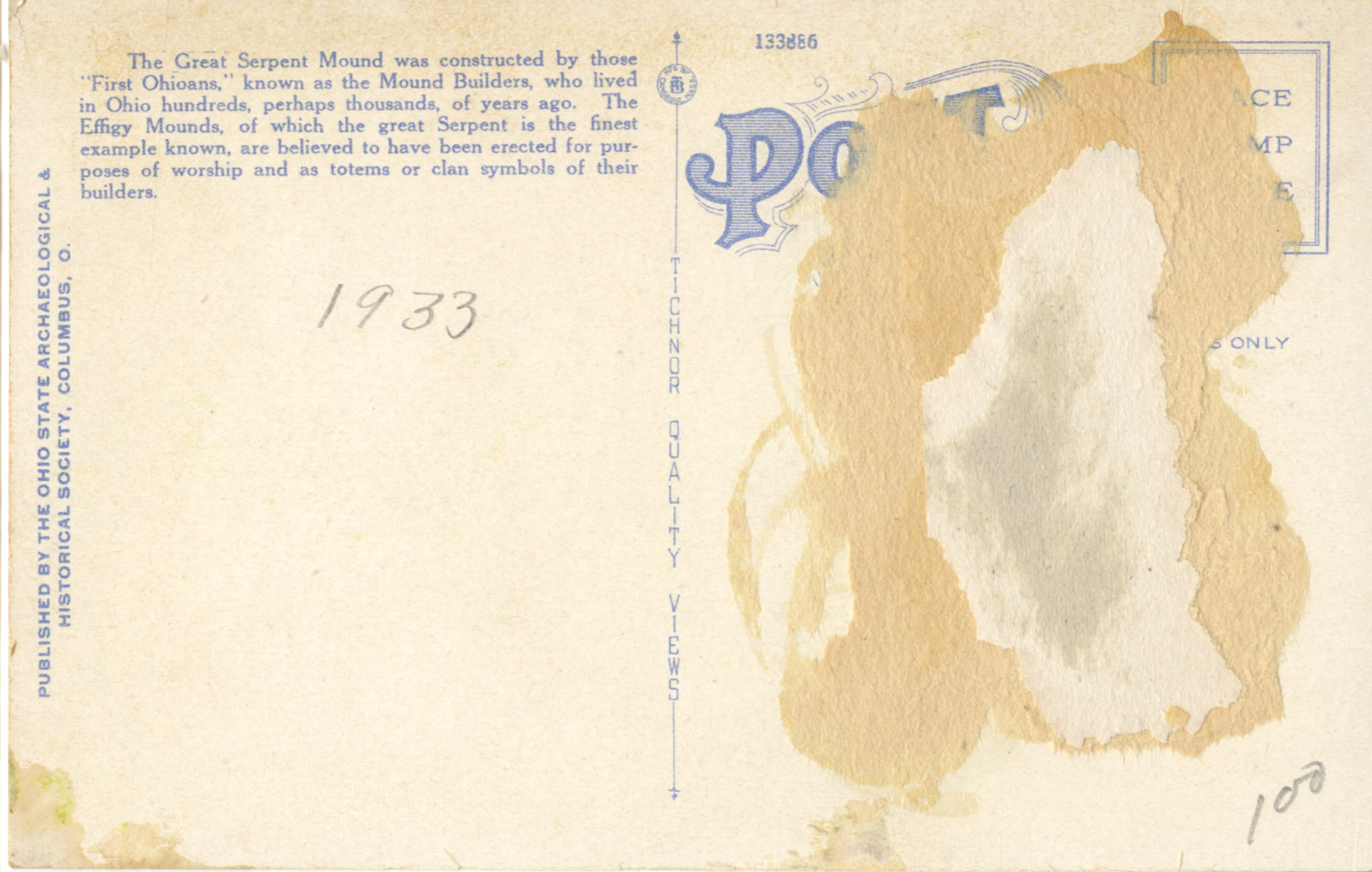 Published by the Ohio State Archaeological and Historical Society, Columbus, O., “Serpent Mount State Park, Peebles, Adams County, Ohio. The convolutions of the Body of the Serpent.,” Scioto County Public Library Local History Digital Collection, accessed December 13, 2025, https://www.sciotolibrary.org/history/items/show/18782.