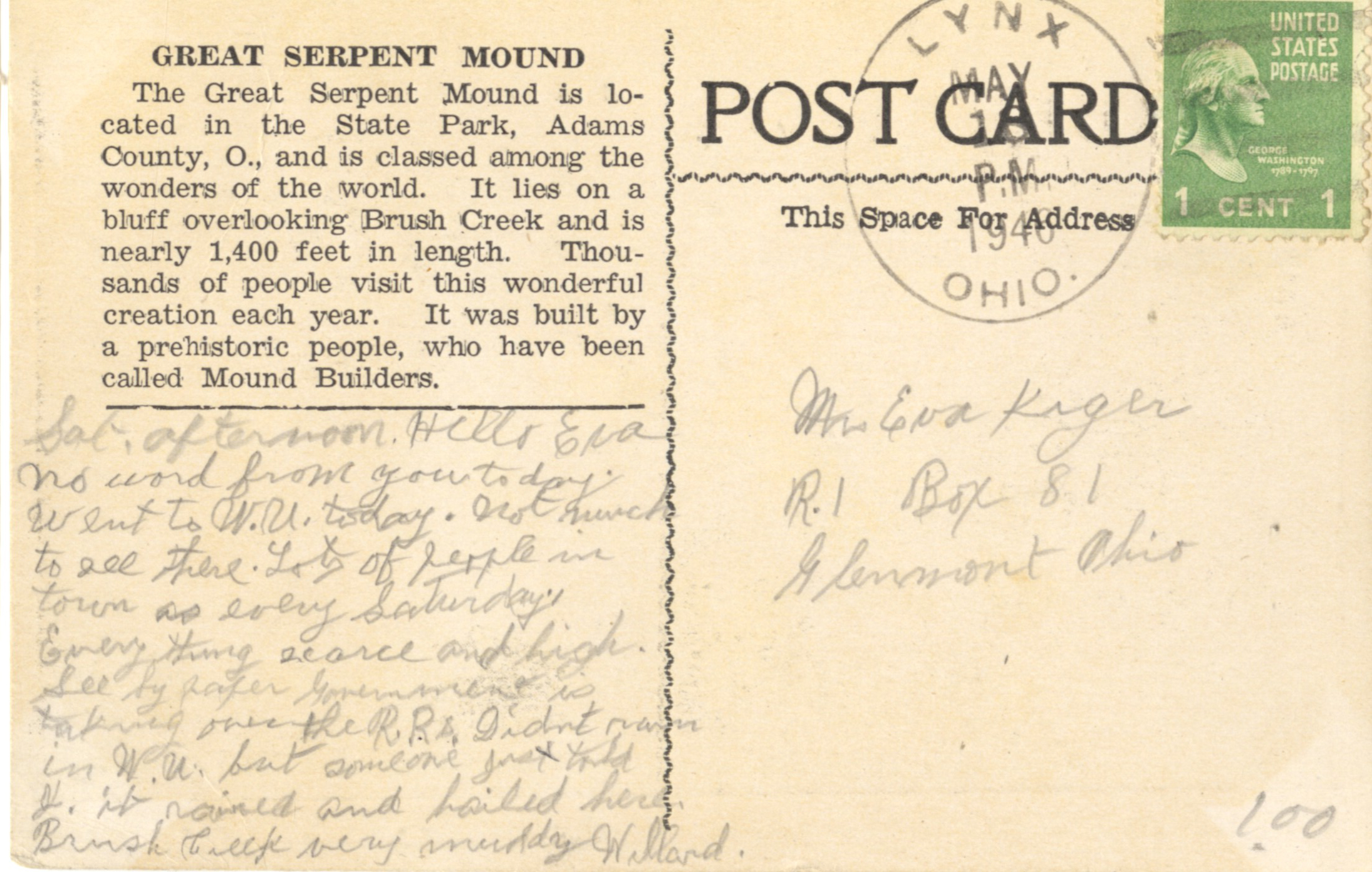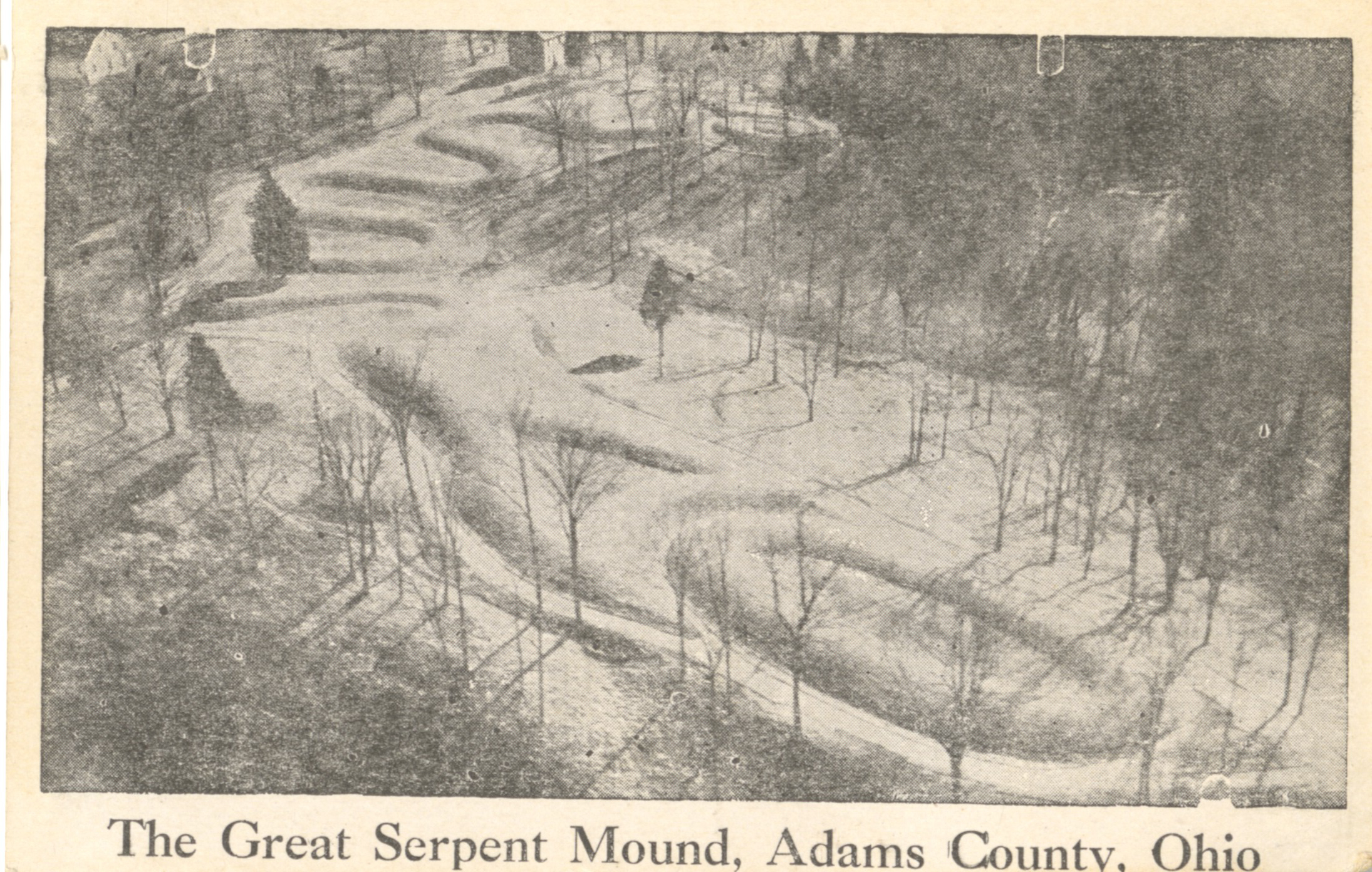Unknown, “The Great Serpent Mound, Adams County, Ohio,” Scioto County Public Library Local History Digital Collection, accessed December 13, 2025, https://www.sciotolibrary.org/history/items/show/18783.