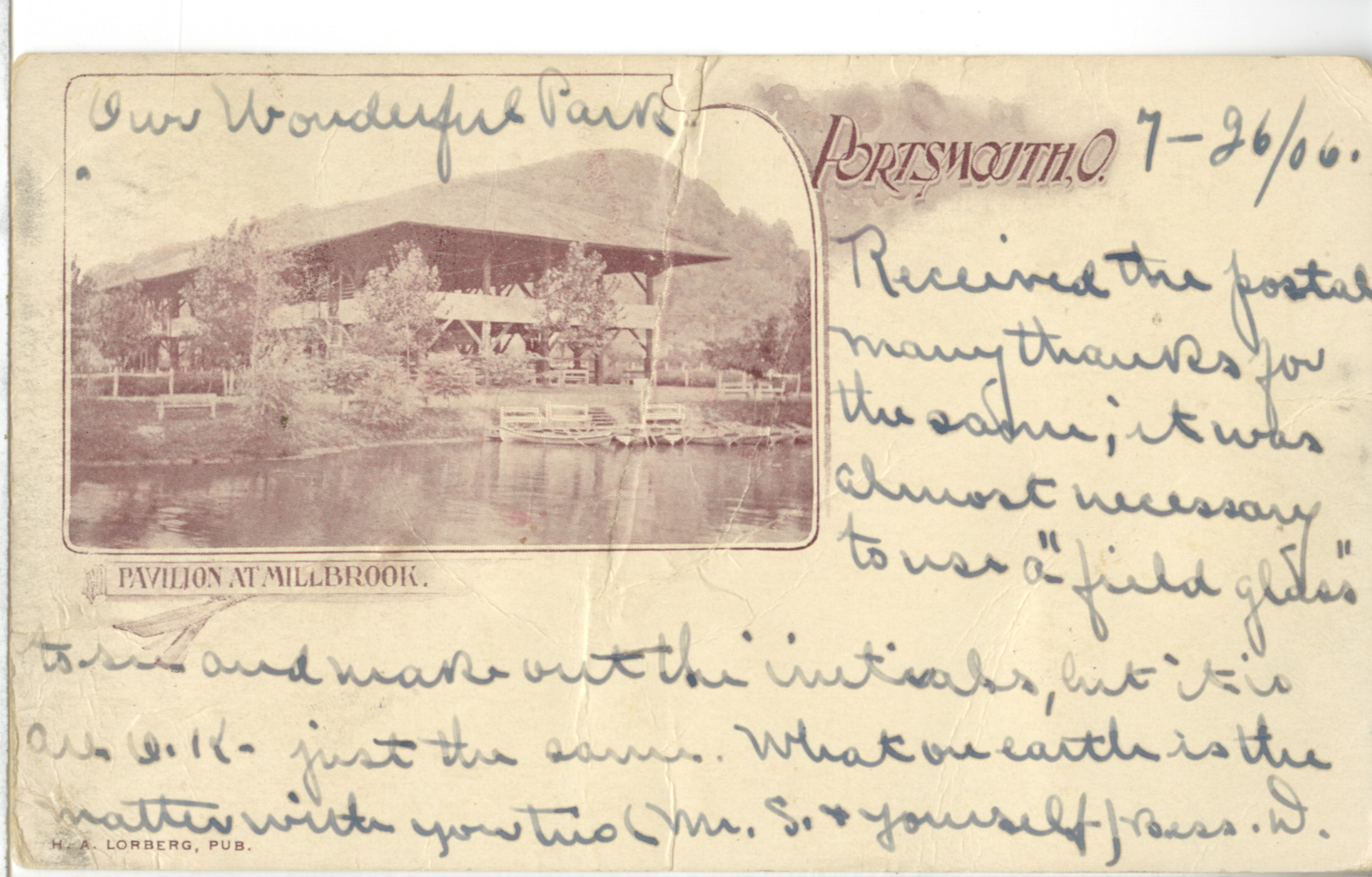 H. A. Lorberg, “Pavilion at Millbrook,” Scioto County Public Library Local History Digital Collection, accessed December 14, 2025, https://www.sciotolibrary.org/history/items/show/18862.