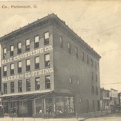 - Sepia tone image of the Haas Clothing building. The 1908-9 Portsmouth City Directory lists Haas Clothing Co. at 421-423 Chillicothe Street