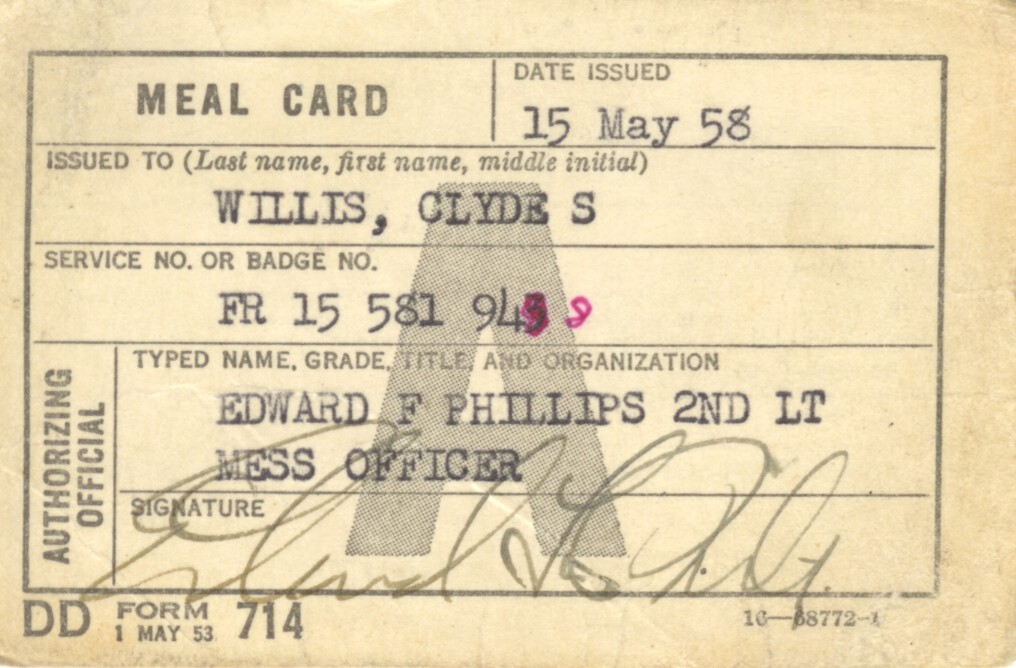 GPO (Government Printing Office), “Military Issue Meal Card,” Scioto County Public Library Local History Digital Collection, accessed December 5, 2025, https://www.sciotolibrary.org/history/items/show/19213.