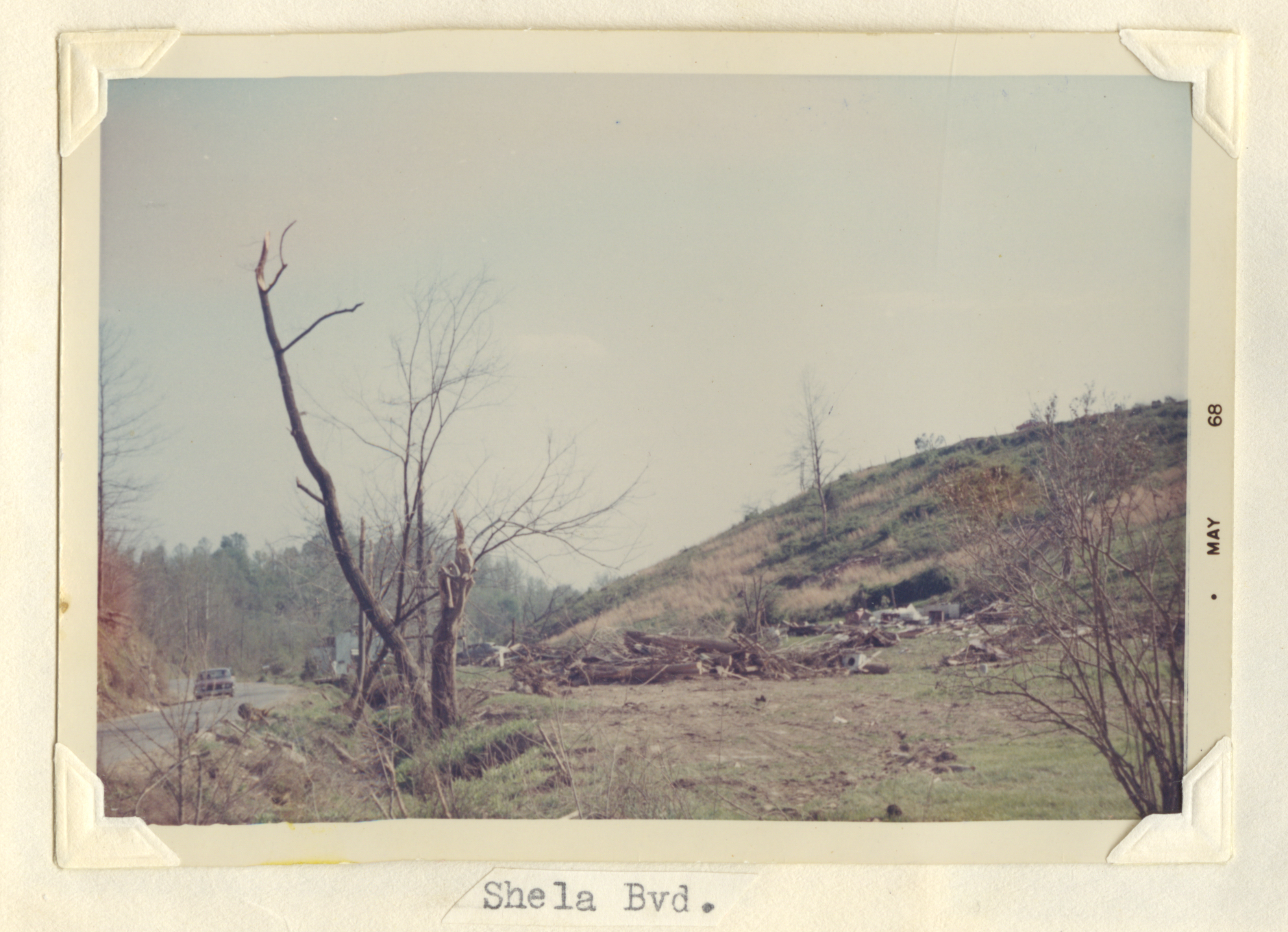 - color scan photo image of the aftermath of the tornado on Shela Boulevard