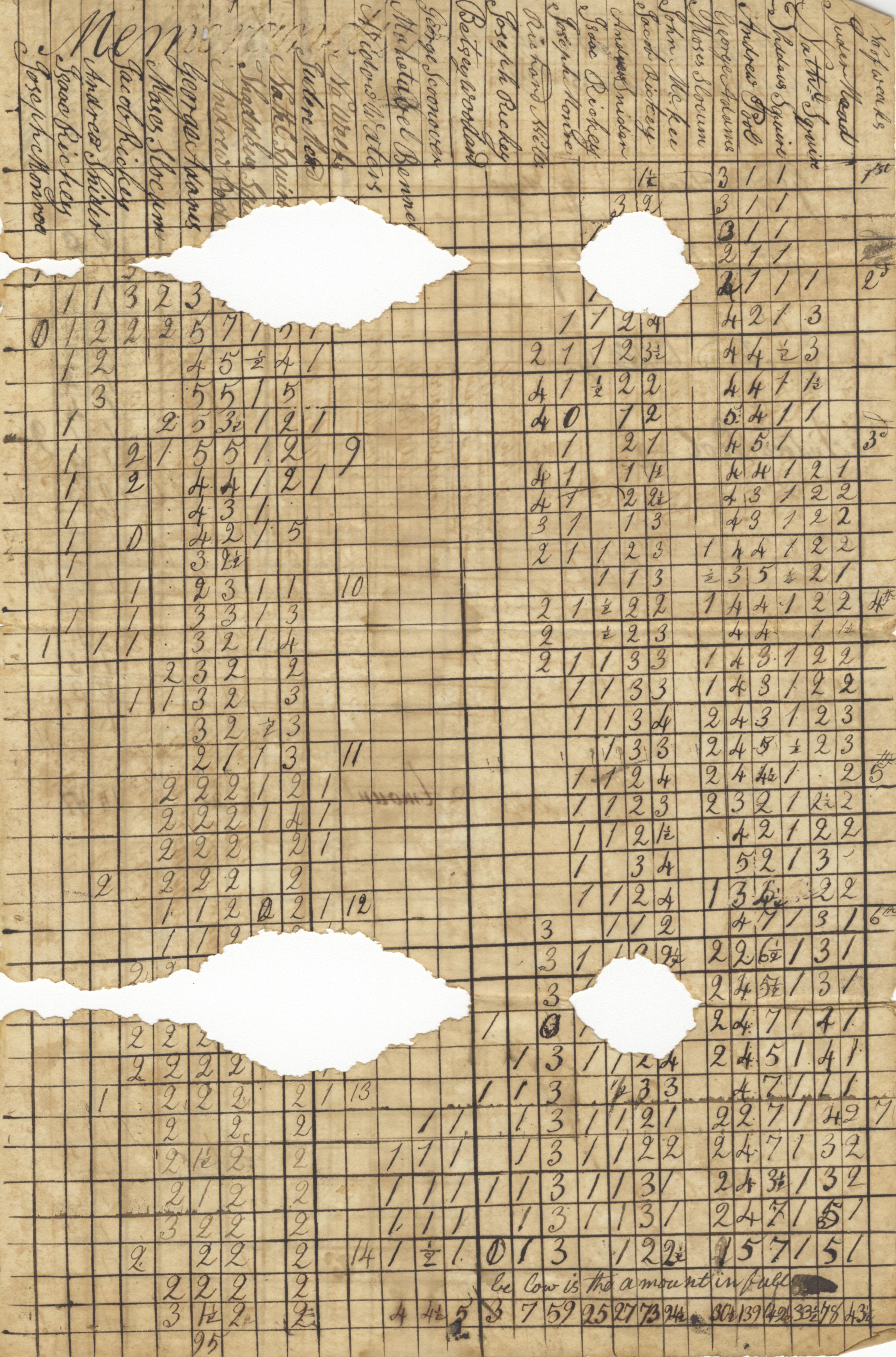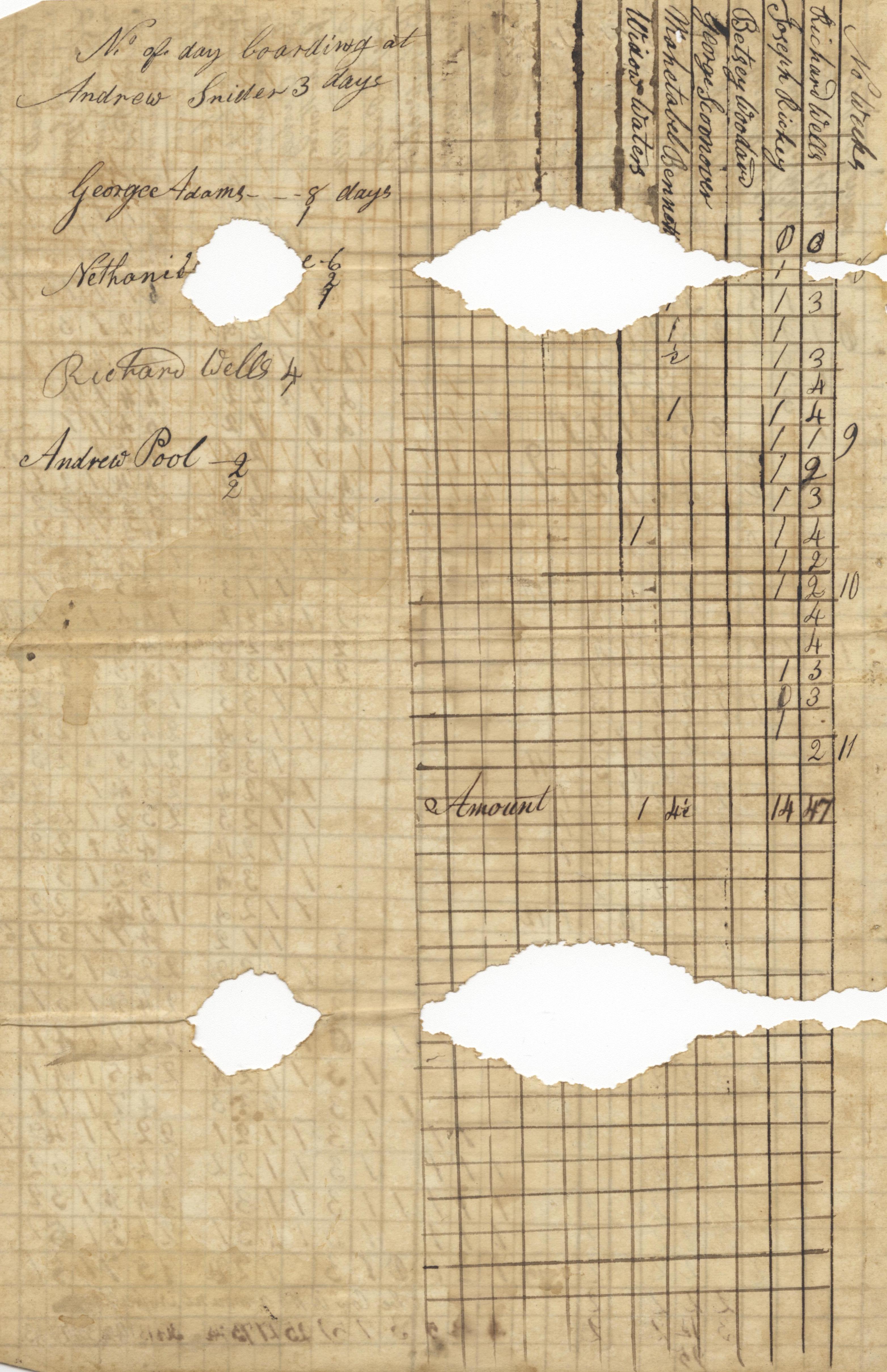 - Eight loose pages from a log indicating an agreement between Scioto County and David Sekes as an instructor/ teacher. Aged documents are front and back with students names in Vernon and Madison Townships. Some holes due to past insect activity.