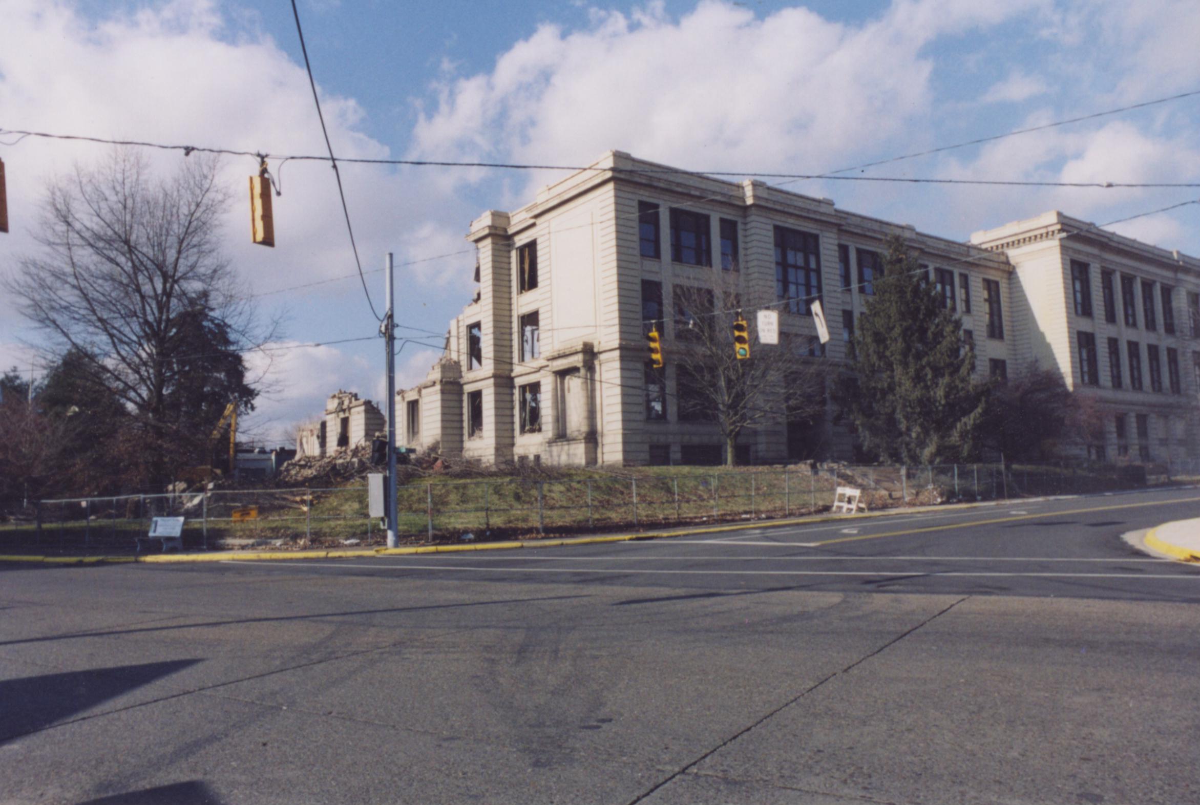 - color photo of old Portsmouth High School (1912-2007) during destruction. It was replaced by the new building.Construction began in November 2003, and the new High School was opened to students on August 23, 2006.