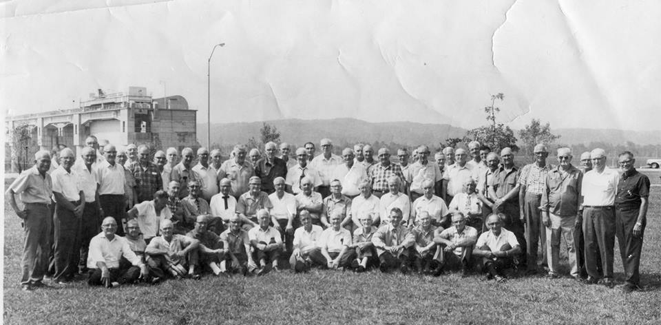 - Black and white scanned photo image of the reunion of the retired steel workers. Dewey Rose is in the middle row, fifth from the left.