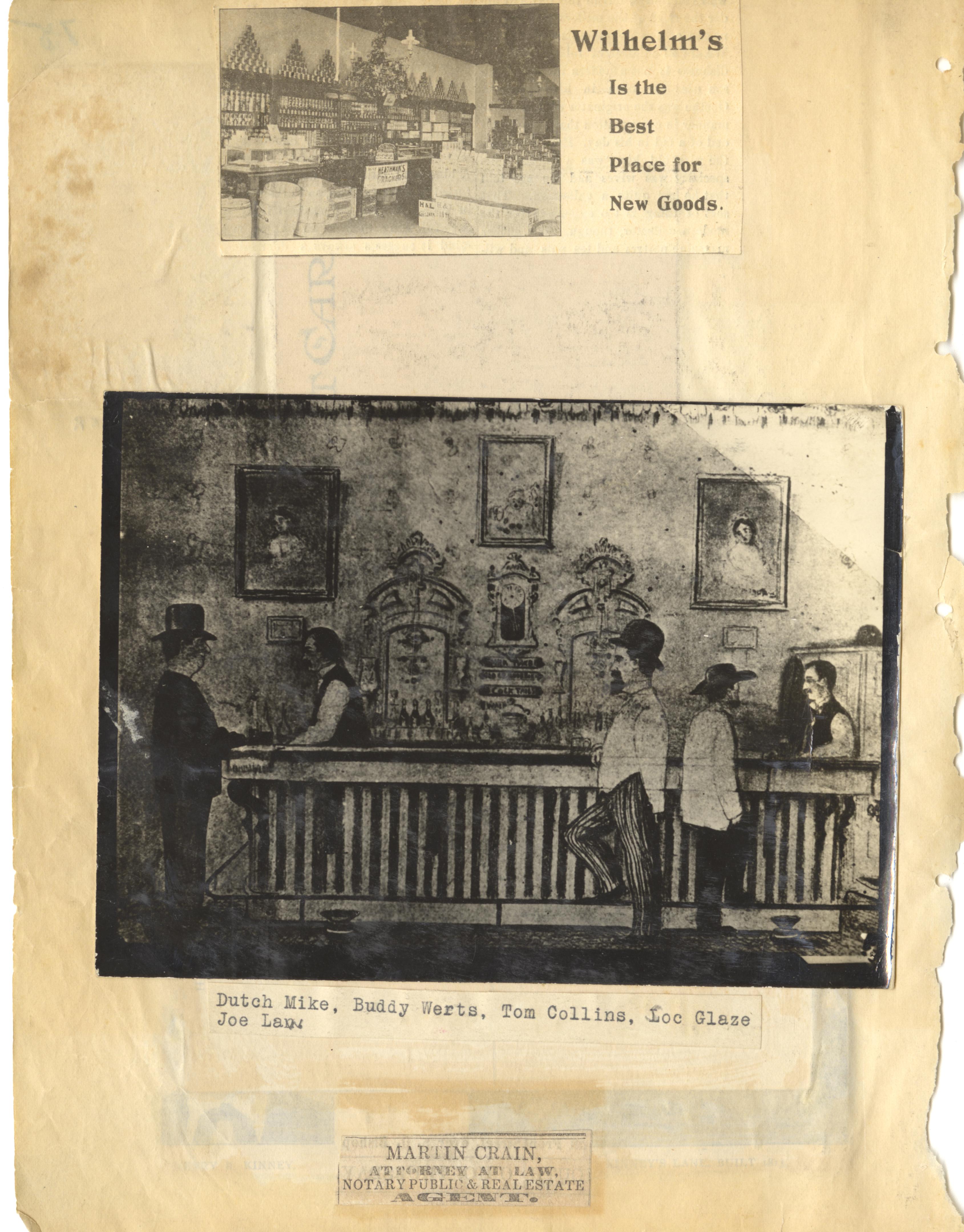 - Photo image of scanned scrapbook page: Advertisement for Wilhelm's and prominent Portsmouth citizens