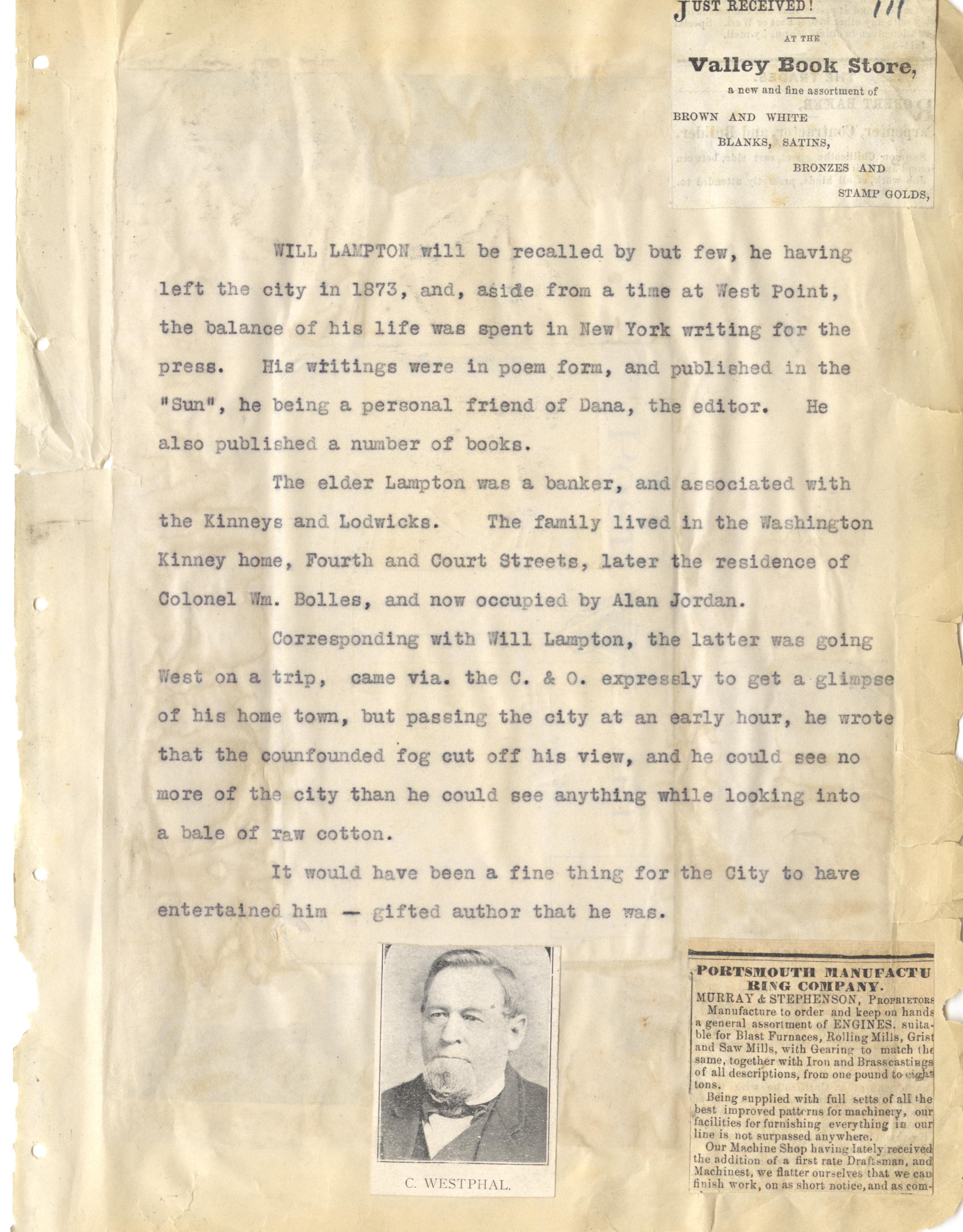 C. Westphal,” Scioto County Public Library Local History Digital Collection, accessed December 12, 2025, https://www.sciotolibrary.org/history/items/show/20897.