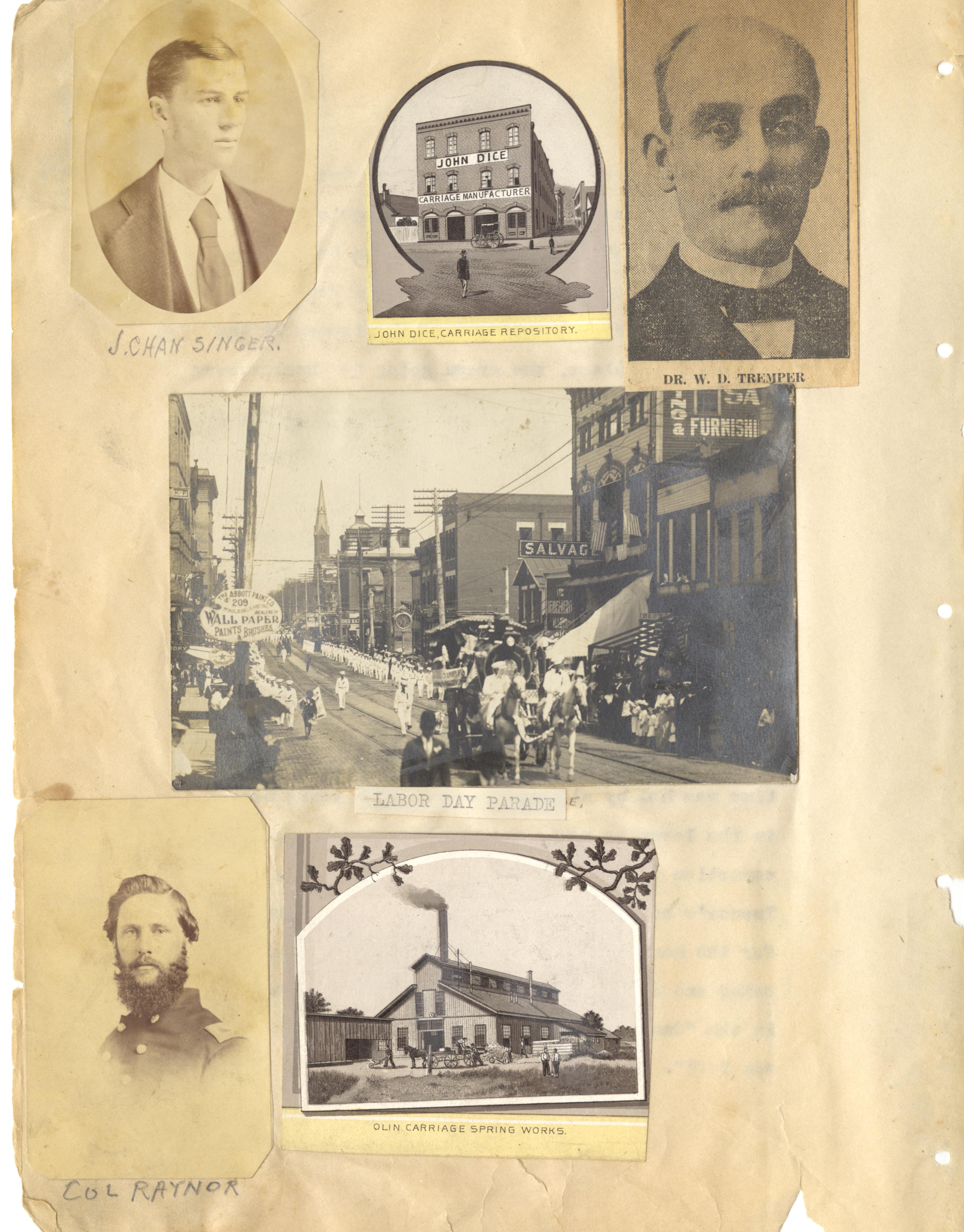 - Photo image of scanned scrapbook page: J. Chan Singer, Dr. W. D. Tremper, and Col Raynor, all prominent Portsmouth citizens.