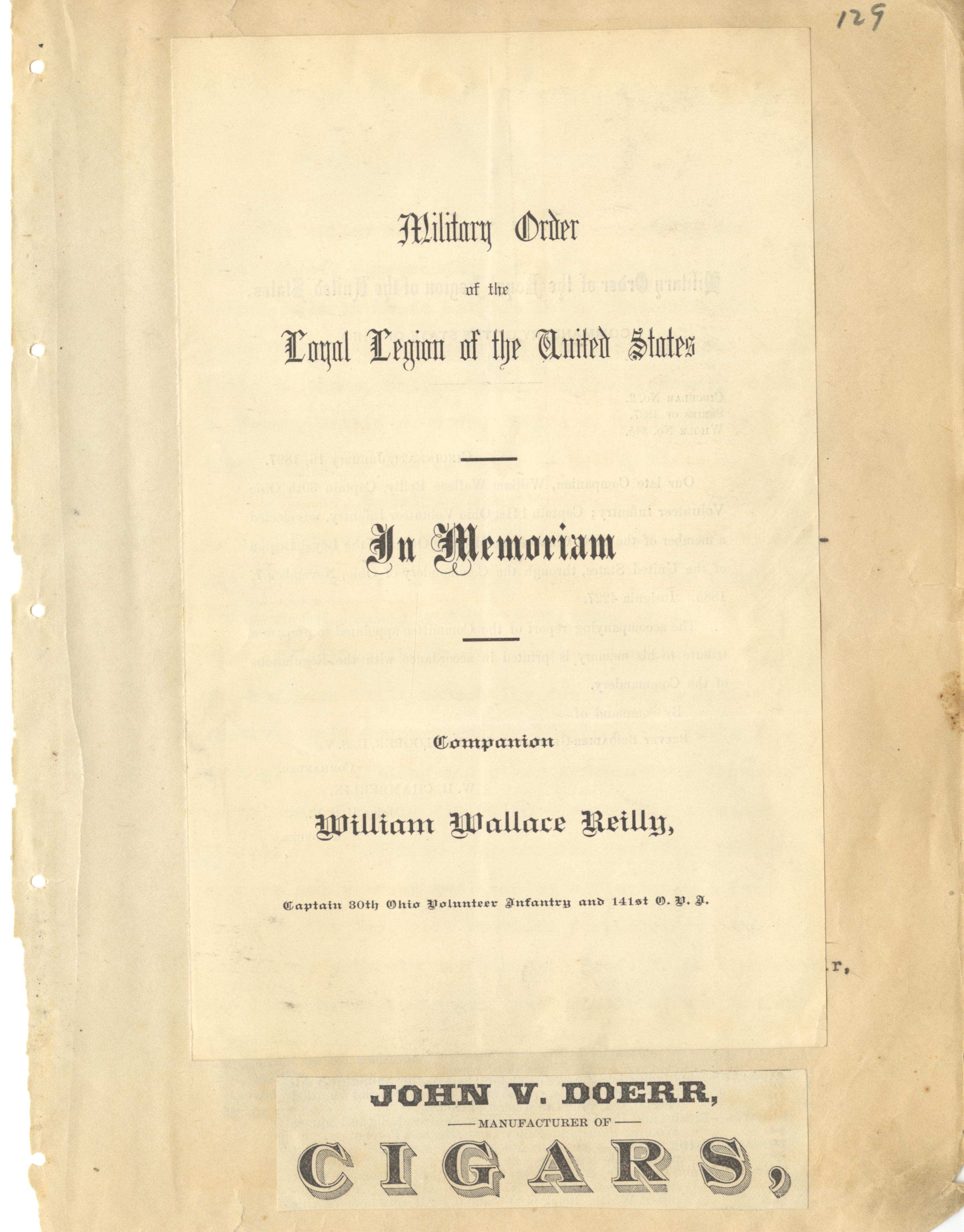 - Memorial Note for William Wallace Reilly, Captain of the 30th Volunteer Infantry and 141st O. V. L.