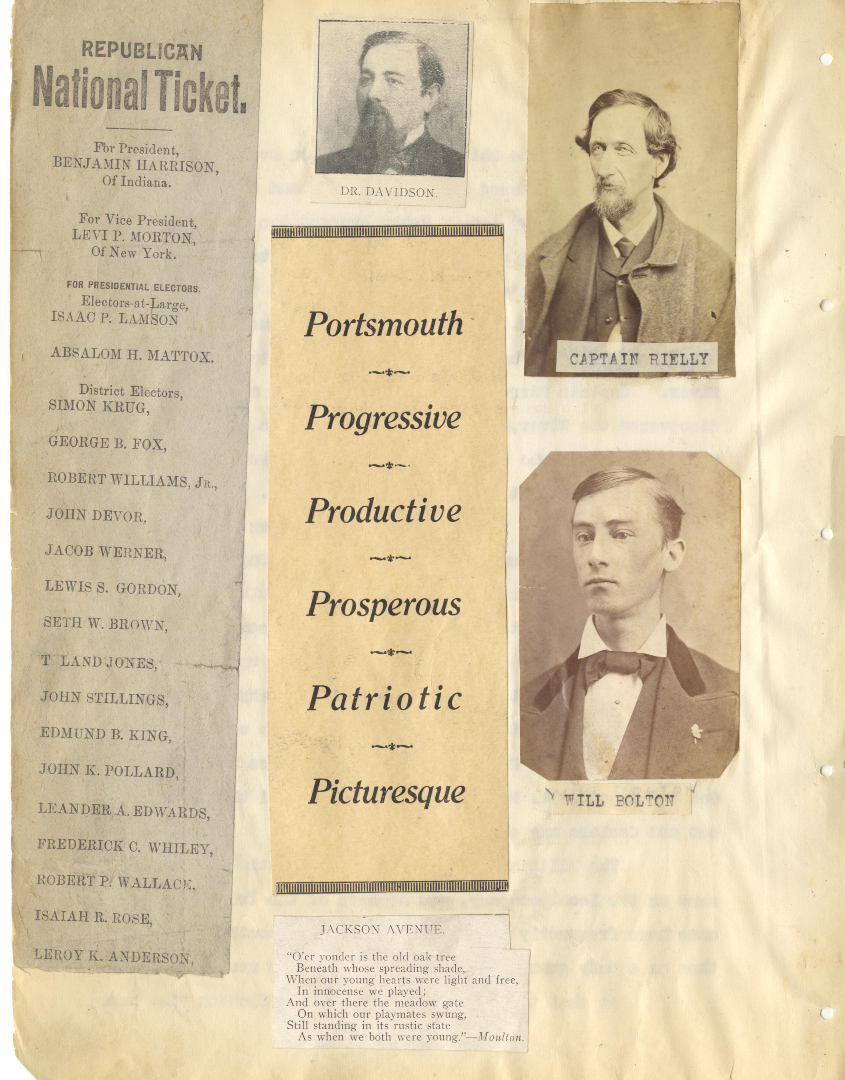 - Photo image of scanned scrapbook page: Republican National Ticket, Dr. Davidson, Captain Rielly, and Will Botlon.