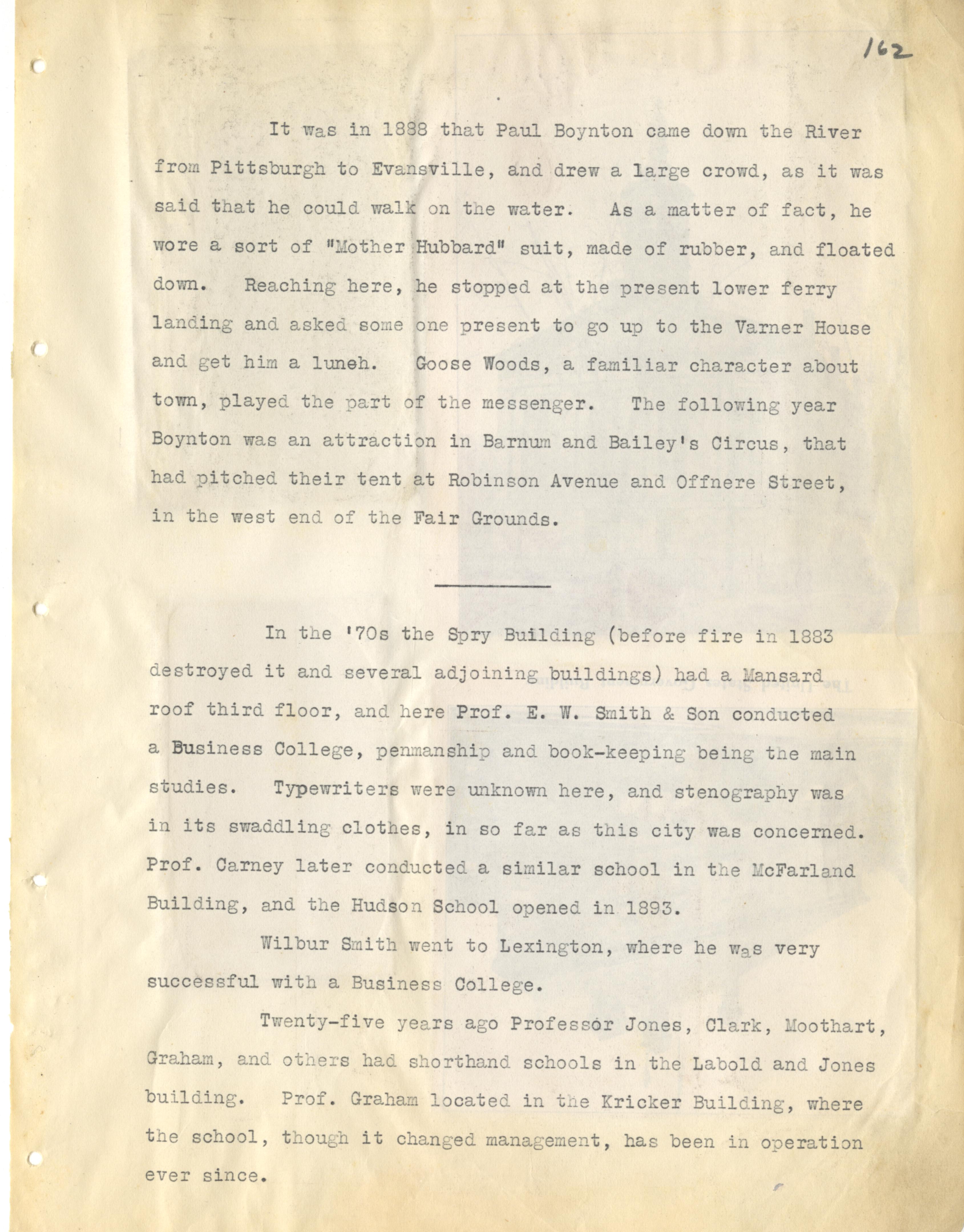 - Photo image of page scanned from scrapbook. Pictured is a typed page detailing information about Paul Boynton, history of the Spry Building, and Portsmouth professors