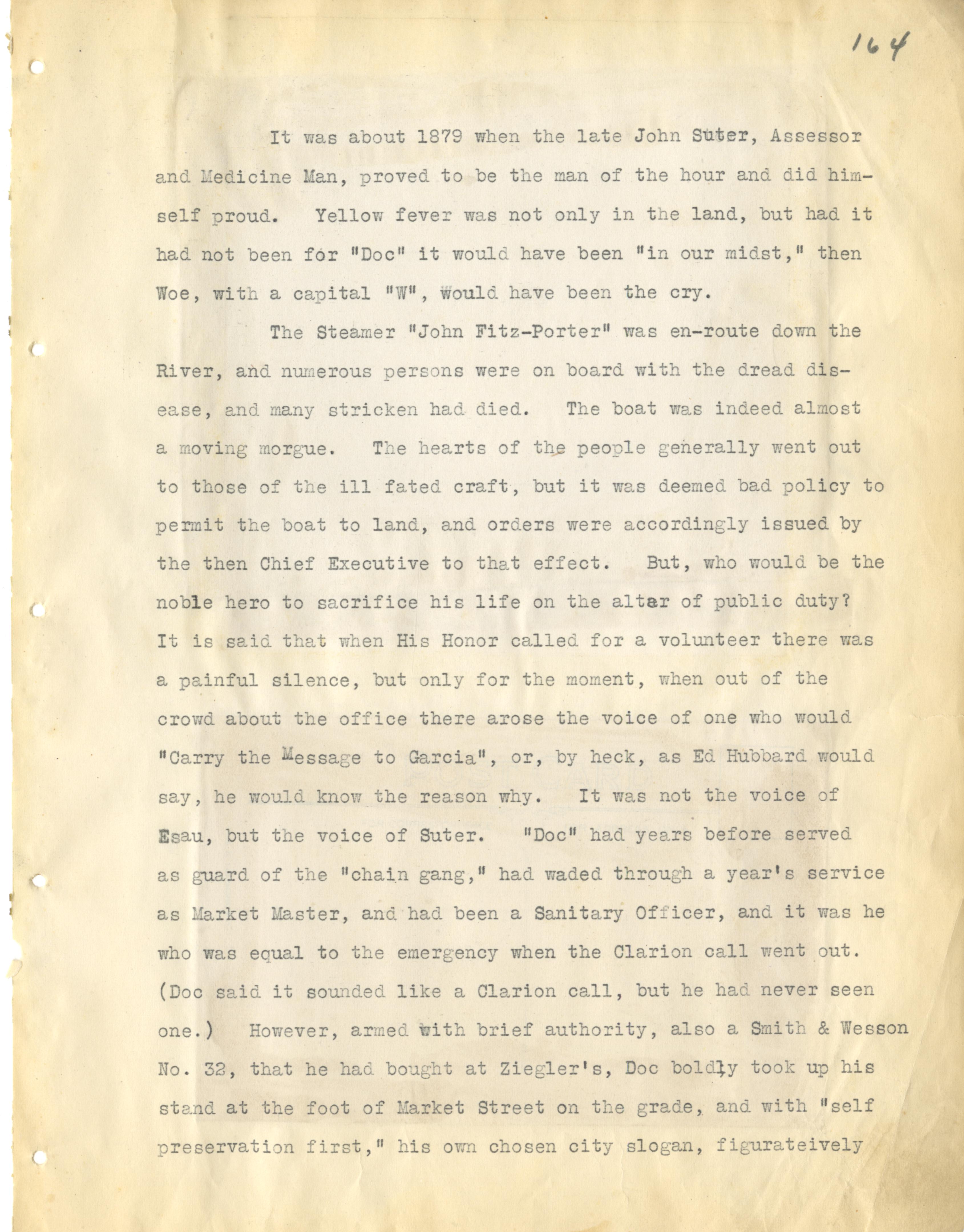 - Photo image of page scanned from scrapbook. Pictured is a typed page about the Steamer John Fitz-Porter.