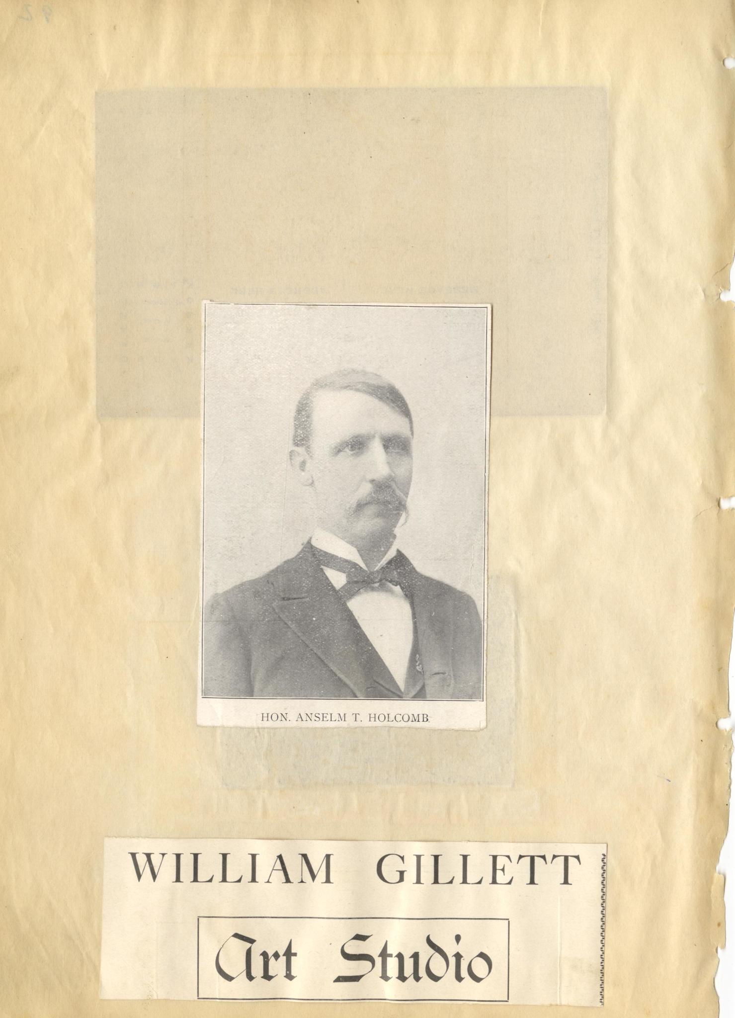 - Honorable Anselm H. Holcomb and an ad for William Gillett's Art Studio