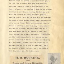 Thomas C. Calvert and Family; P. S. Iams; Ad for H. H. Buskirk, Dealer in Staple and Fancy Groceries