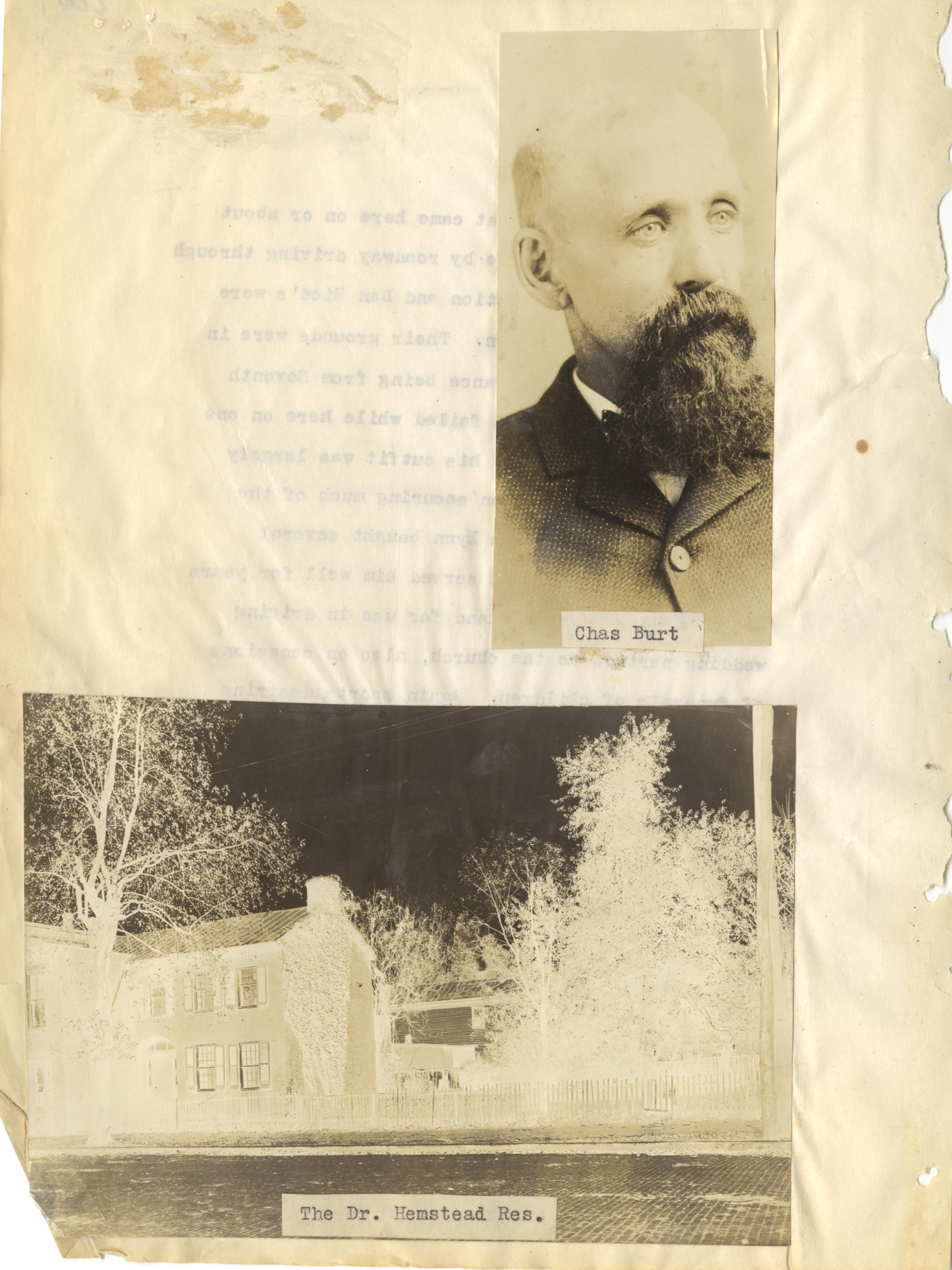 - Photo image of scanned scrapbook page. Pictured is two black and white photos of Charles Burt, prominent Portsmouth citizen and the house of Dr. Hemstead (Hempstead). Dr. Hempstead was a prominent physician in Portsmouth in the early 1800's, known for his determination to help his patients. In Nelson W. Evans' History of Scioto County, it was said that Dr. Hempstead would sometimes ride fifty miles just to help a patient.