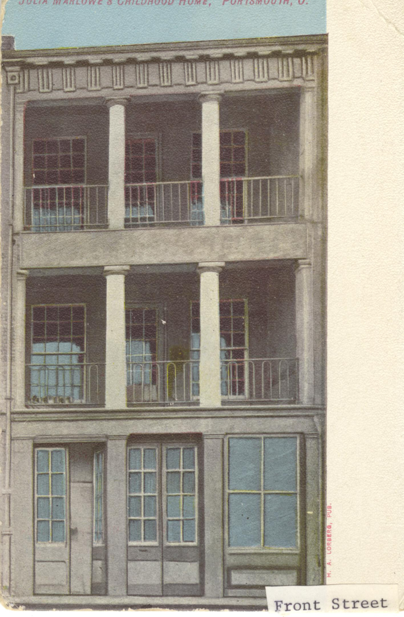 H.A.Lorberg Publisher, “Julia Marlowe's Childhood Home, Portsmouth, O,” Scioto County Public Library Local History Digital Collection, accessed December 5, 2025, https://www.sciotolibrary.org/history/items/show/21624.