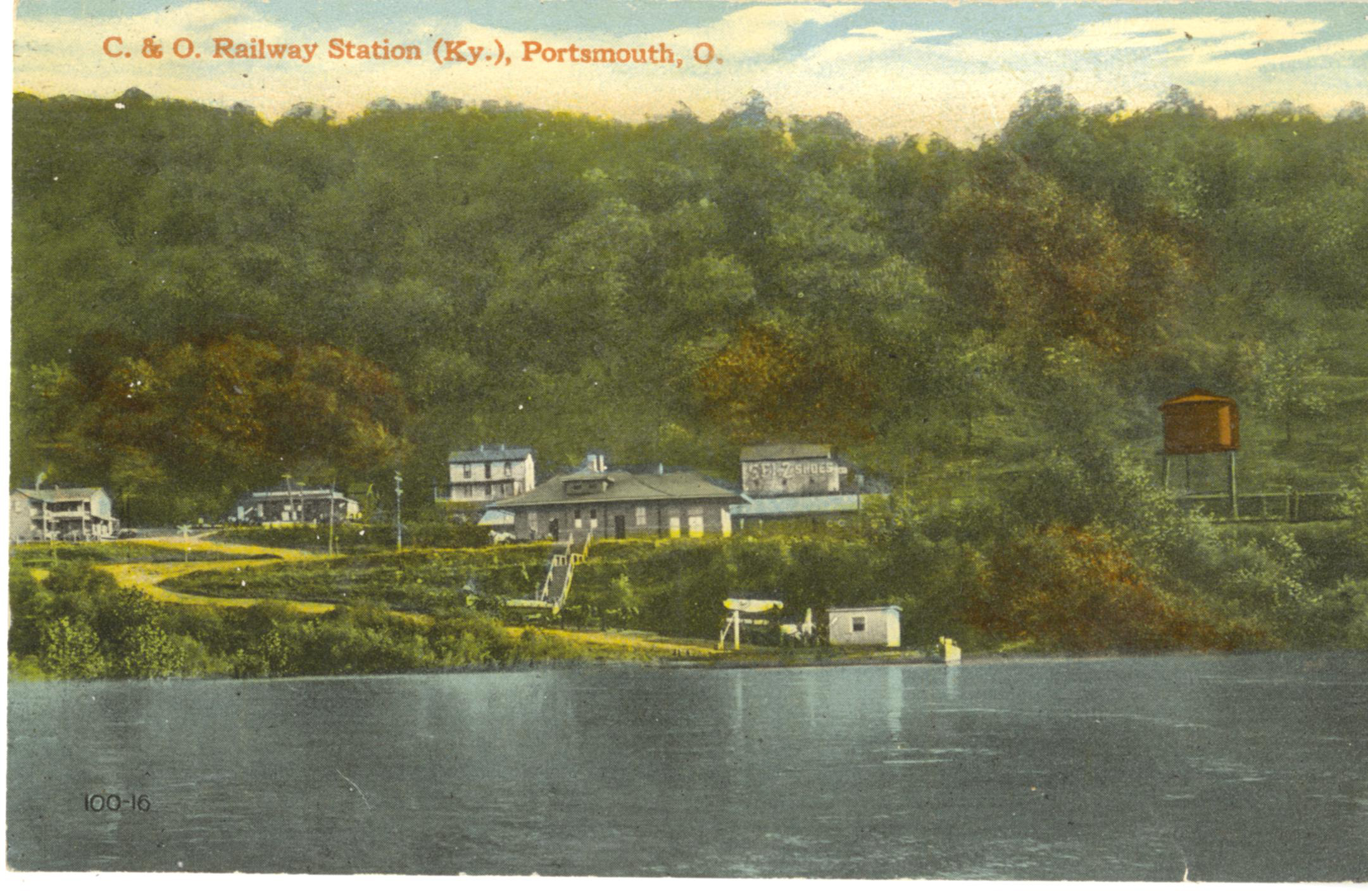- Colorized photo image of the South Portsmouth, Kentucky C. & O. Railway Depot, across the Ohio River from Portsmouth, Ohio. Opened in the early 1900's, this building was still being used by the Chessie System when it was destroyed by fire May 1, 1975.