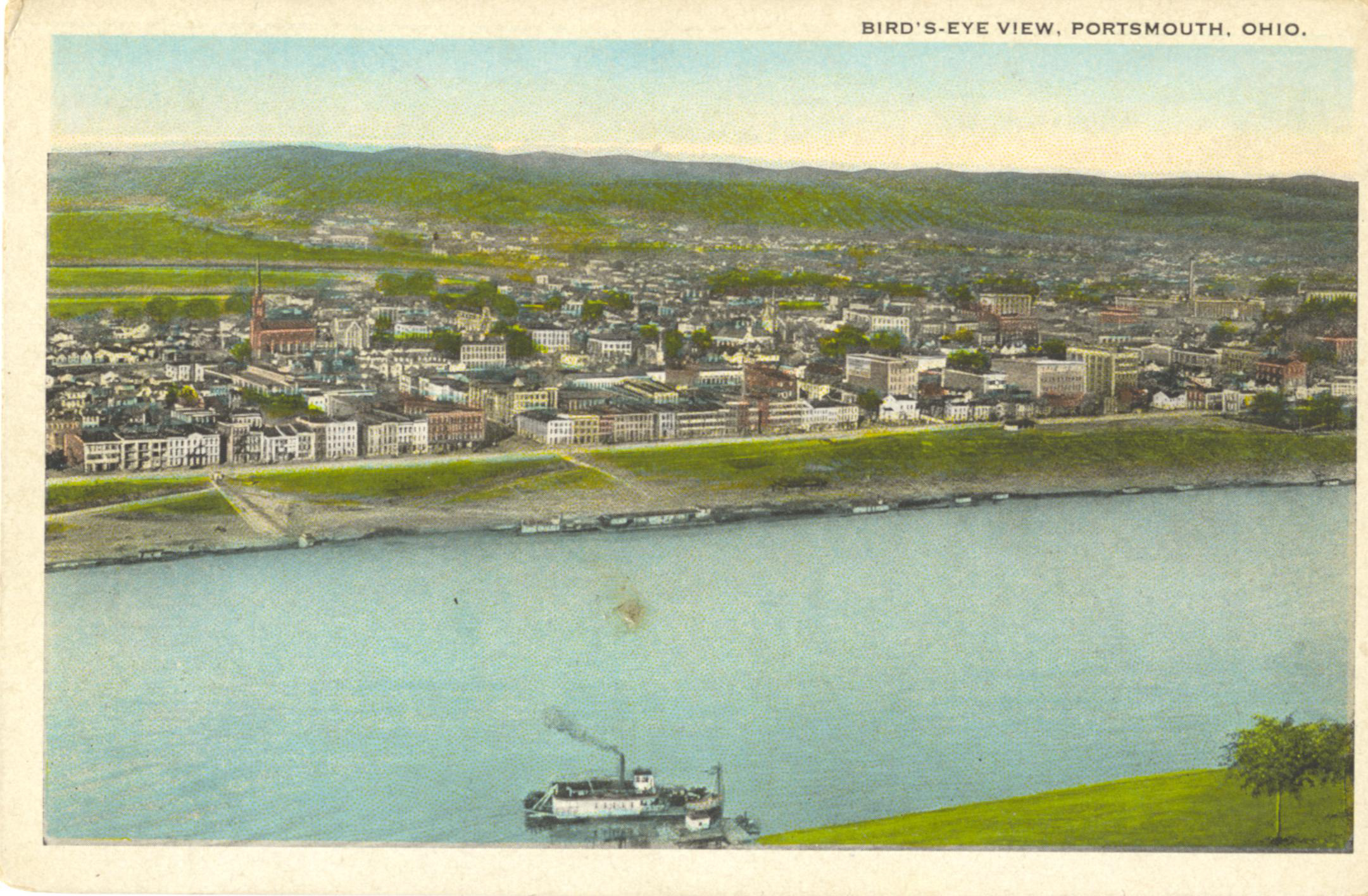 - Colorized image of Portsmouth looking from the Kentucky hills across the Ohio River.