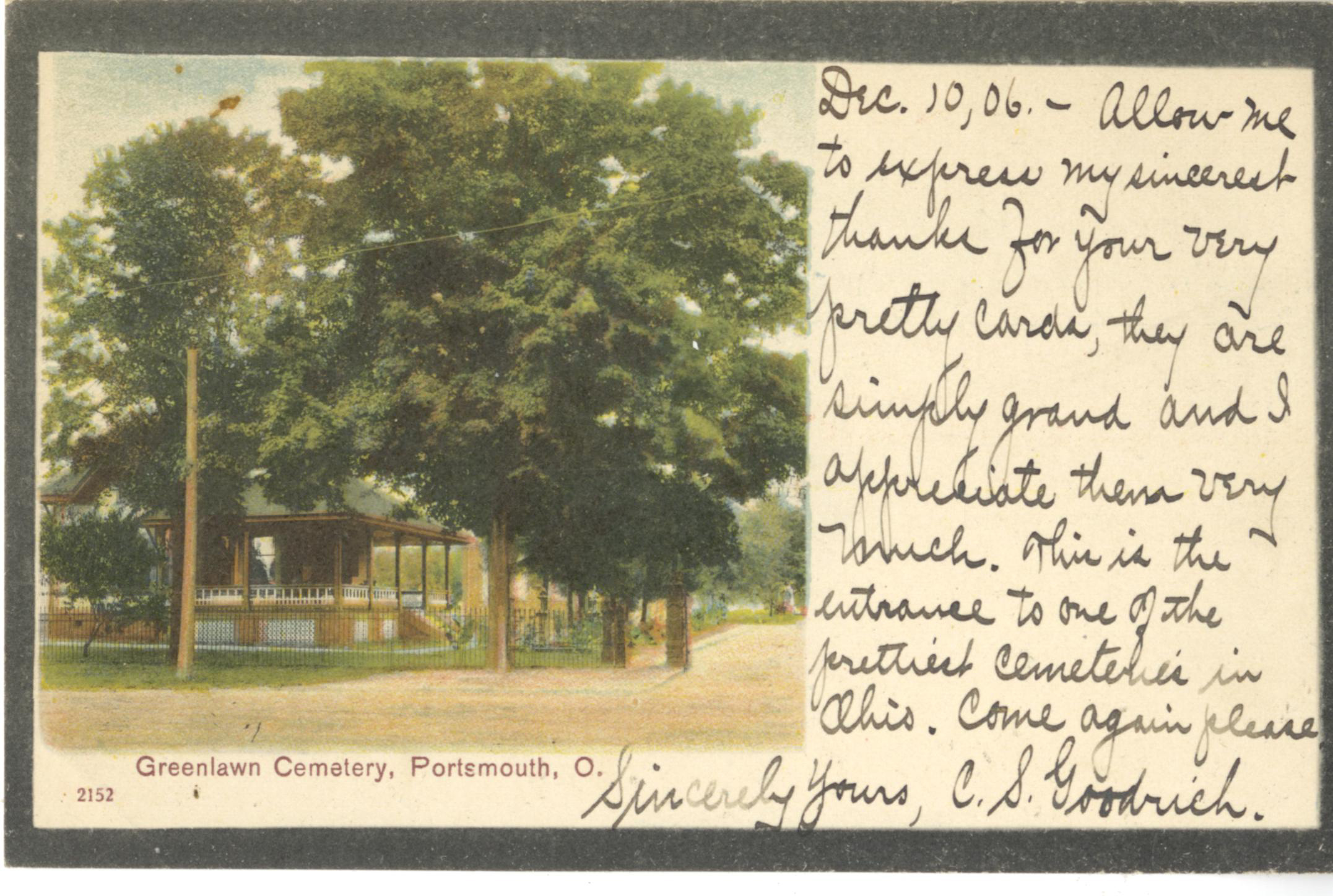 H.A.Lorberg, Portsmouth, O. and Leipzig, Germany, “Greenlawn Cemetery, Portsmouth, O,” Scioto County Public Library Local History Digital Collection, accessed December 6, 2025, https://www.sciotolibrary.org/history/items/show/21832.