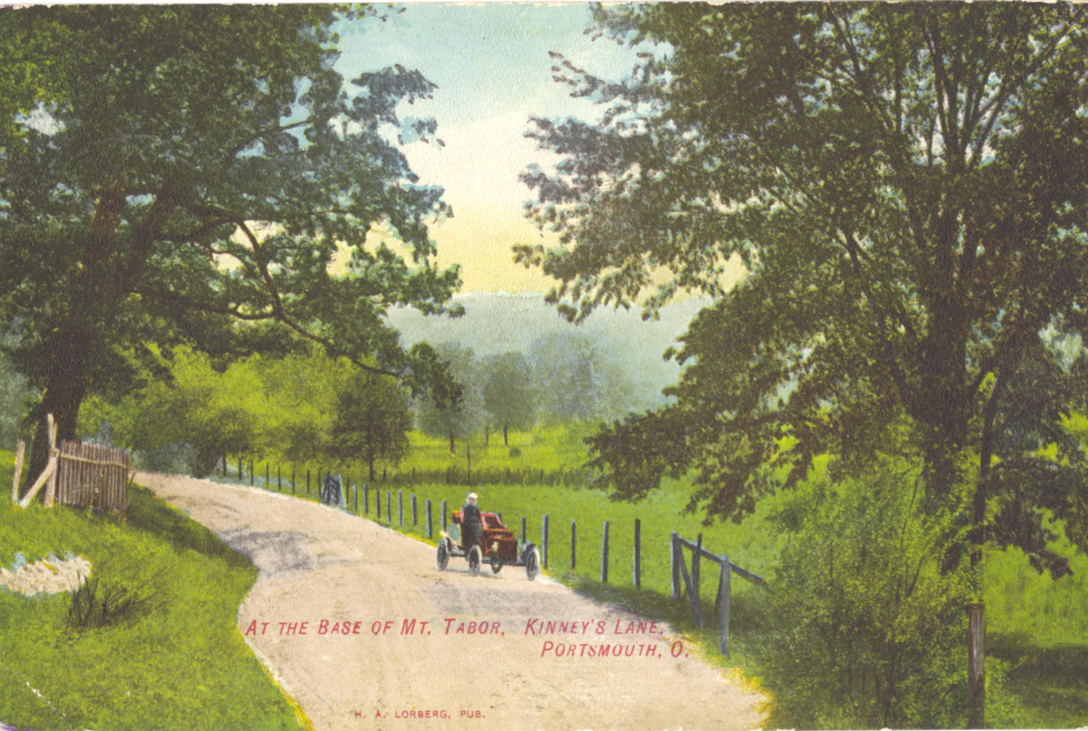 H.A.Lorberg, Publisher, “At the Base of Mt. Tabor, Kinney's Lane, Portsmouth, O,” Scioto County Public Library Local History Digital Collection, accessed December 6, 2025, https://www.sciotolibrary.org/history/items/show/21834.