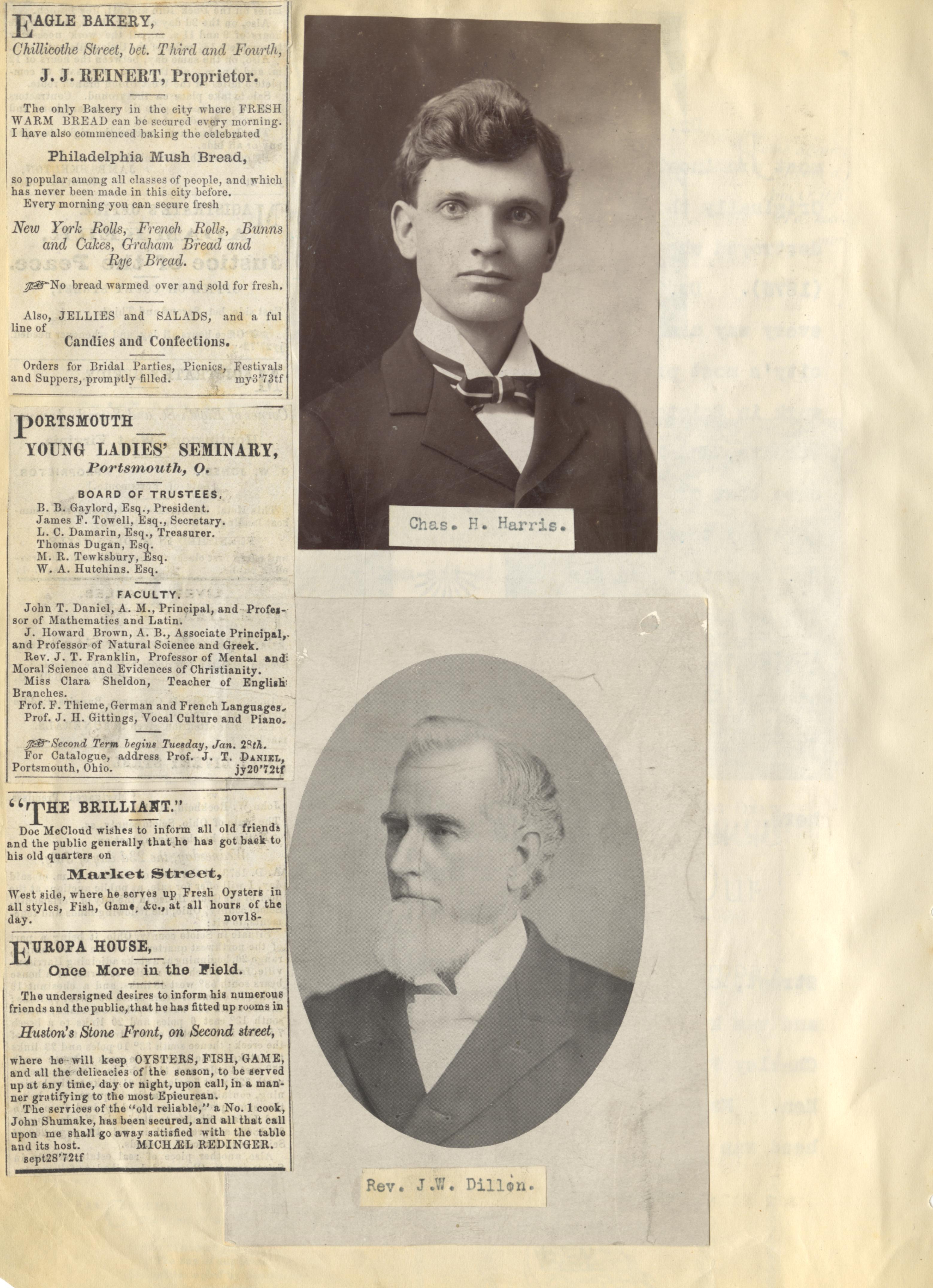 Henry A. Lorberg, “Charles H. Harris; Rev. J. W. Dillon; Business Clippings,” Scioto County Public Library Local History Digital Collection, accessed December 8, 2025, https://www.sciotolibrary.org/history/items/show/21996.