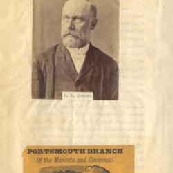 - Scanned unnumbered page from Henry A. Lorberg scrapbook containing black & white image of J. J. Harper and a clipping for the Portsmouth Branch of the Marietta and Cincinnati Railroad.