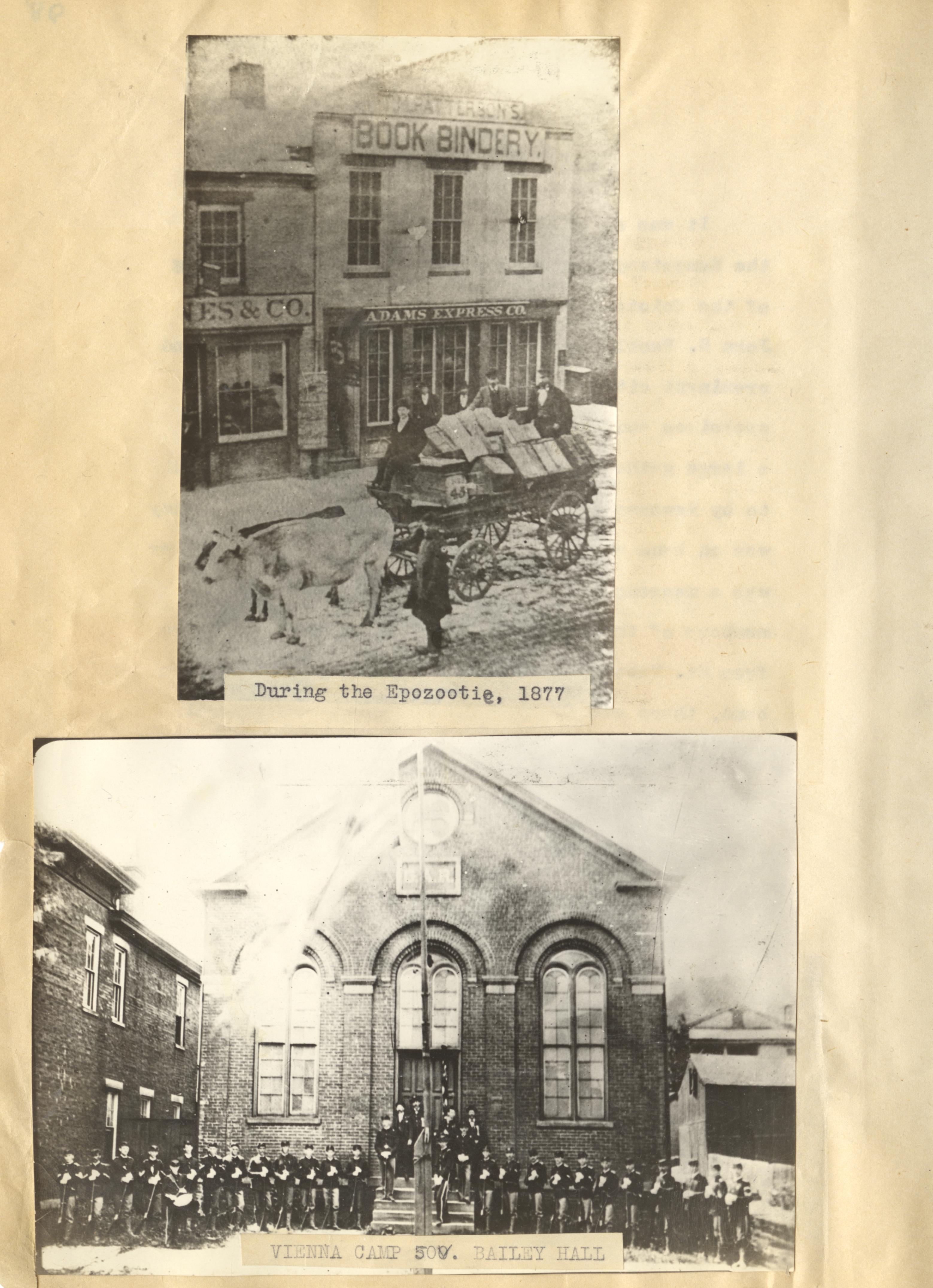 - Scanned unnumbered page from Henry A. Lorberg scrapbook containing black & white images of During the Epozootic, 1877; and Vienna Camp, Bailey Hall.