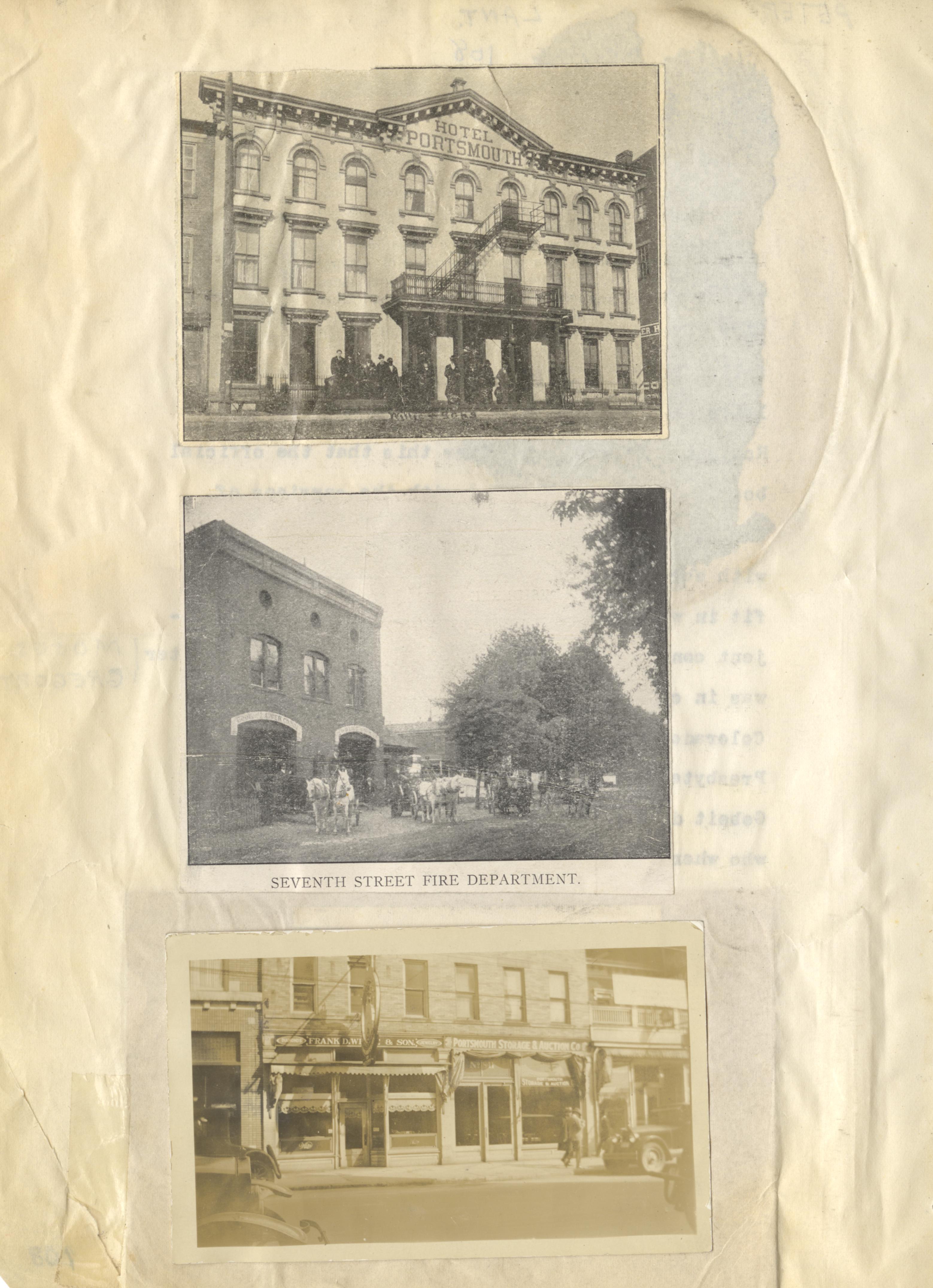 - Hotel Portsmouth; Seventh (7th) Street Fire Department; F. D. White & Son and Portsmouth Storage & Auction Co. storefronts