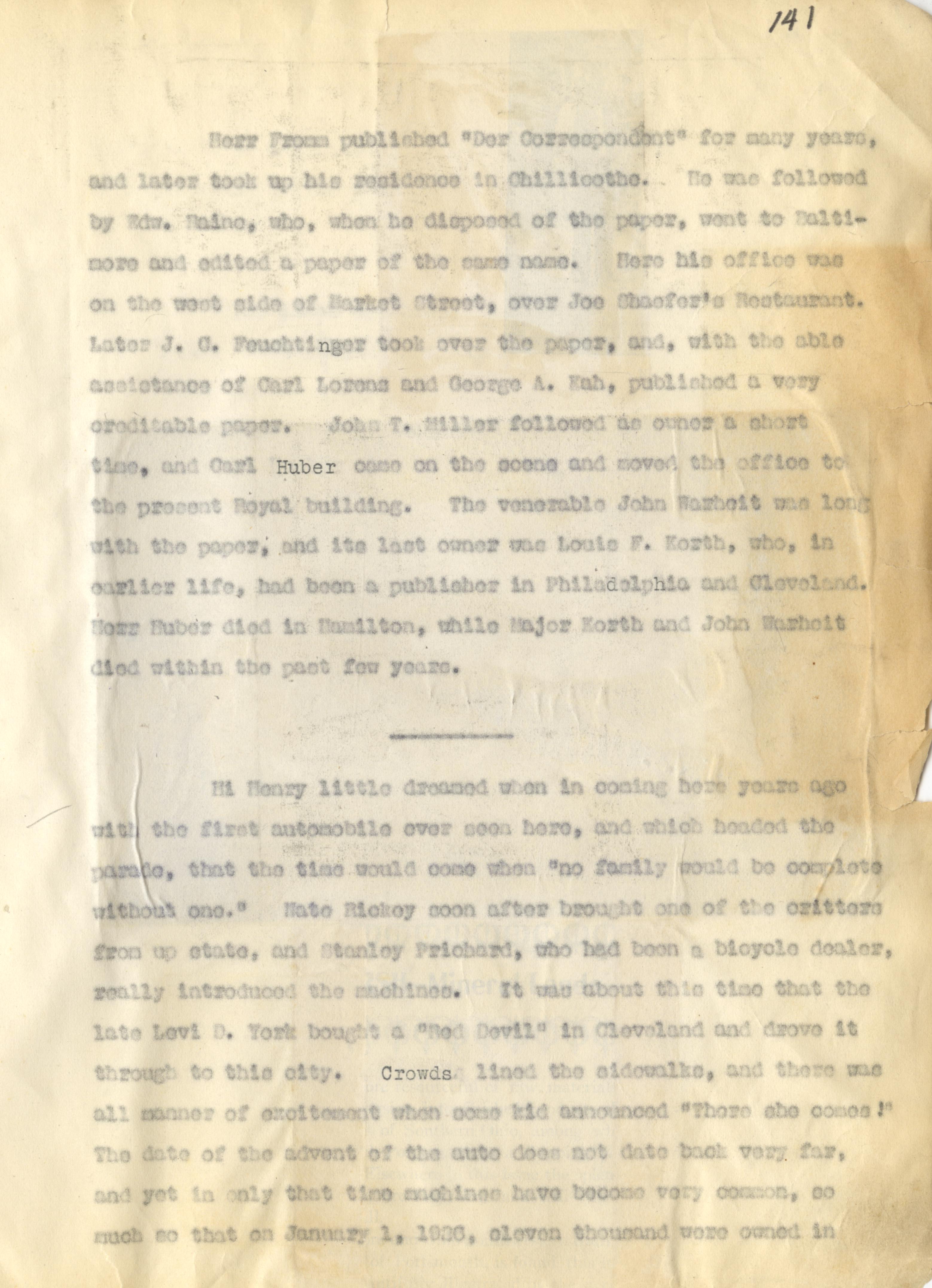 Henry A. Lorberg, “Der Correspondant; First automobile,” Scioto County Public Library Local History Digital Collection, accessed December 16, 2025, https://www.sciotolibrary.org/history/items/show/22122.