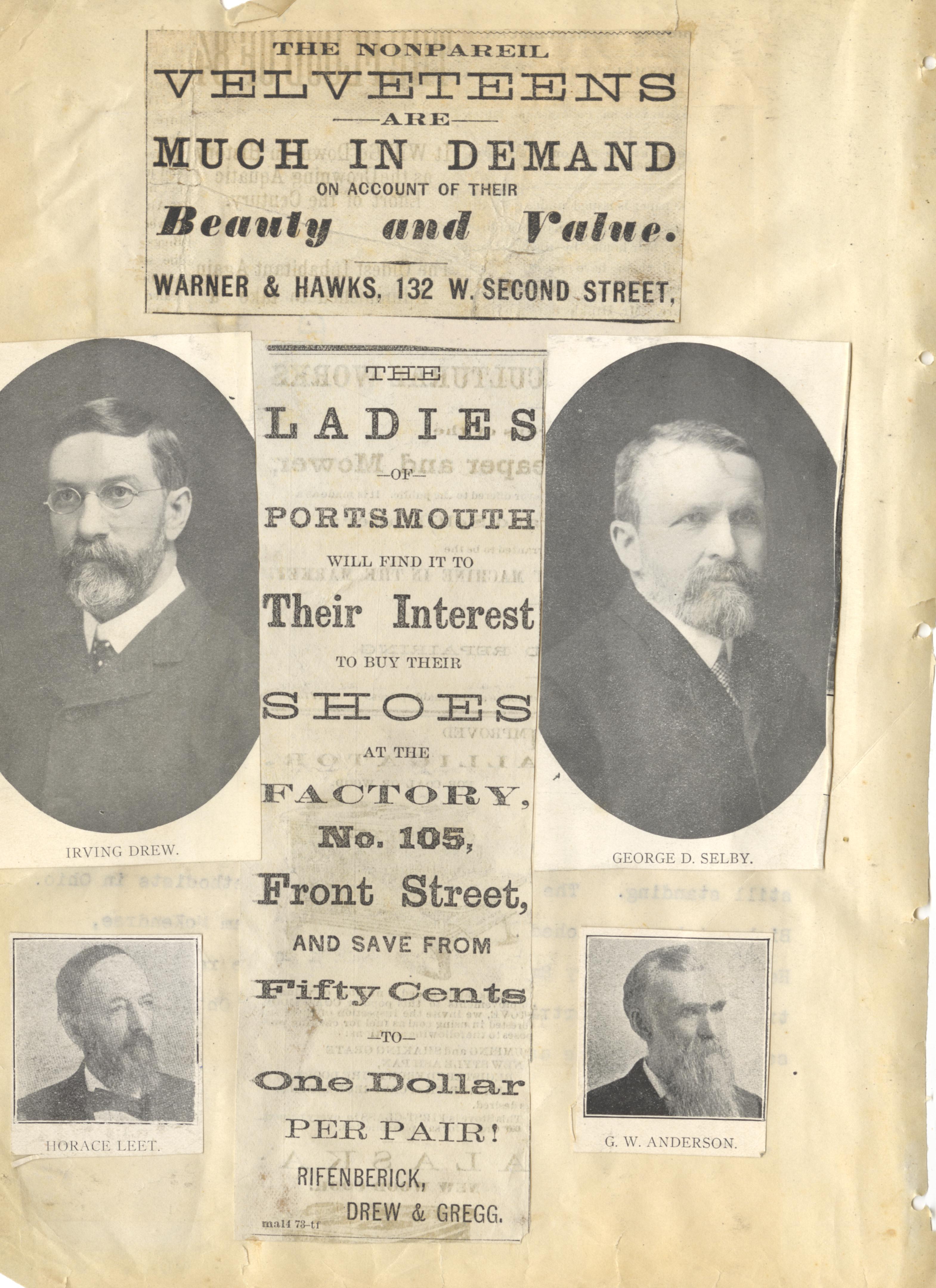 Henry A. Lorberg , “Irving Drew; George D. Selby; Horace Leet; G. W. Anderson; Ads for Local Businesses,” Scioto County Public Library Local History Digital Collection, accessed December 5, 2025, https://www.sciotolibrary.org/history/items/show/22319.