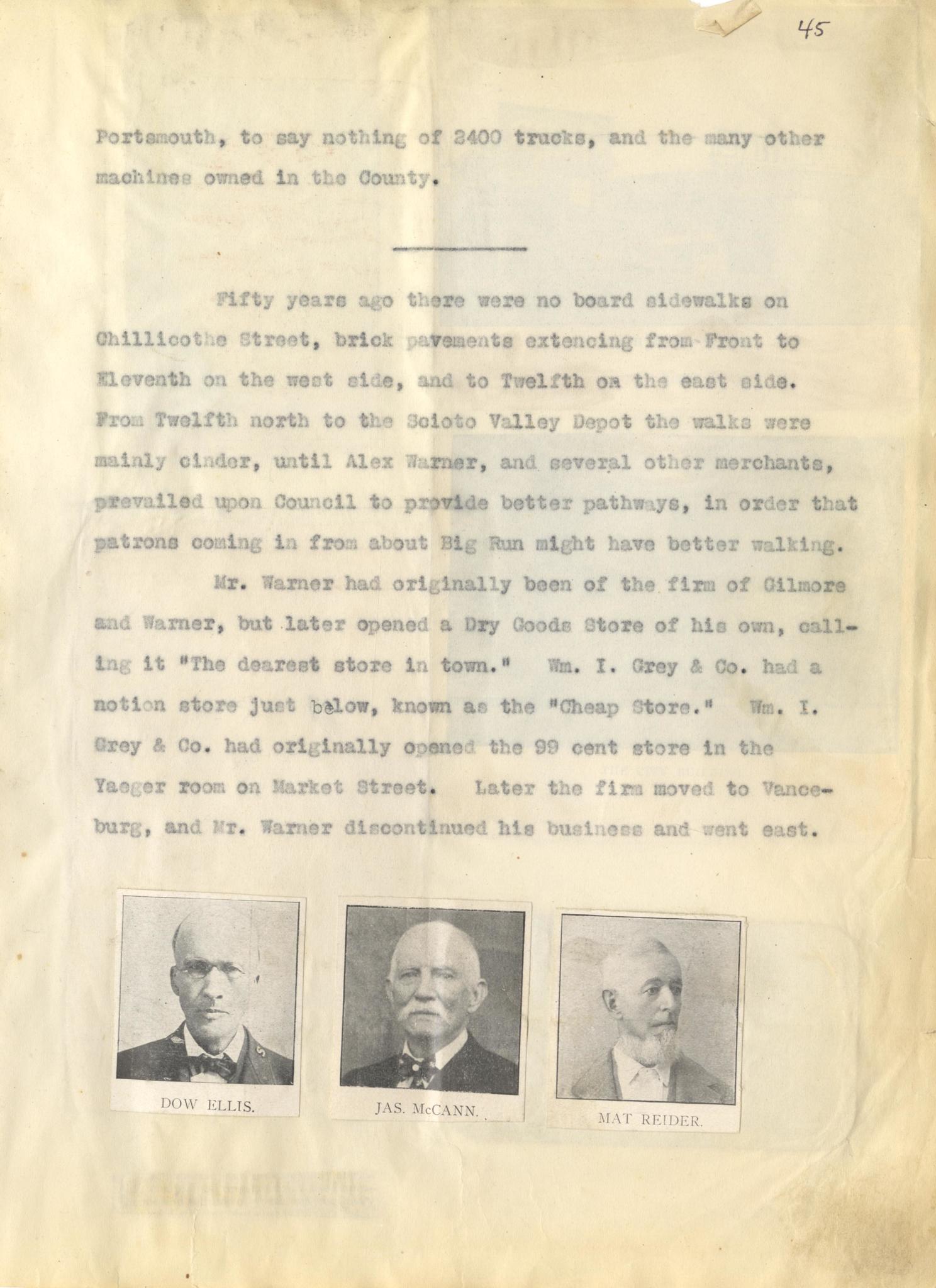 Henry A. Lorberg , “Merchants and Businesses Downtown; Dow Ellis; James McCann; Mat Reider,” Scioto County Public Library Local History Digital Collection, accessed December 13, 2025, https://www.sciotolibrary.org/history/items/show/22387.