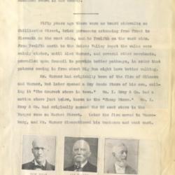 - Photo image of scanned scrapbook page. Pictured: Merchants and Businesses Downtown; Dow Ellis; James McCann; Mat Reider