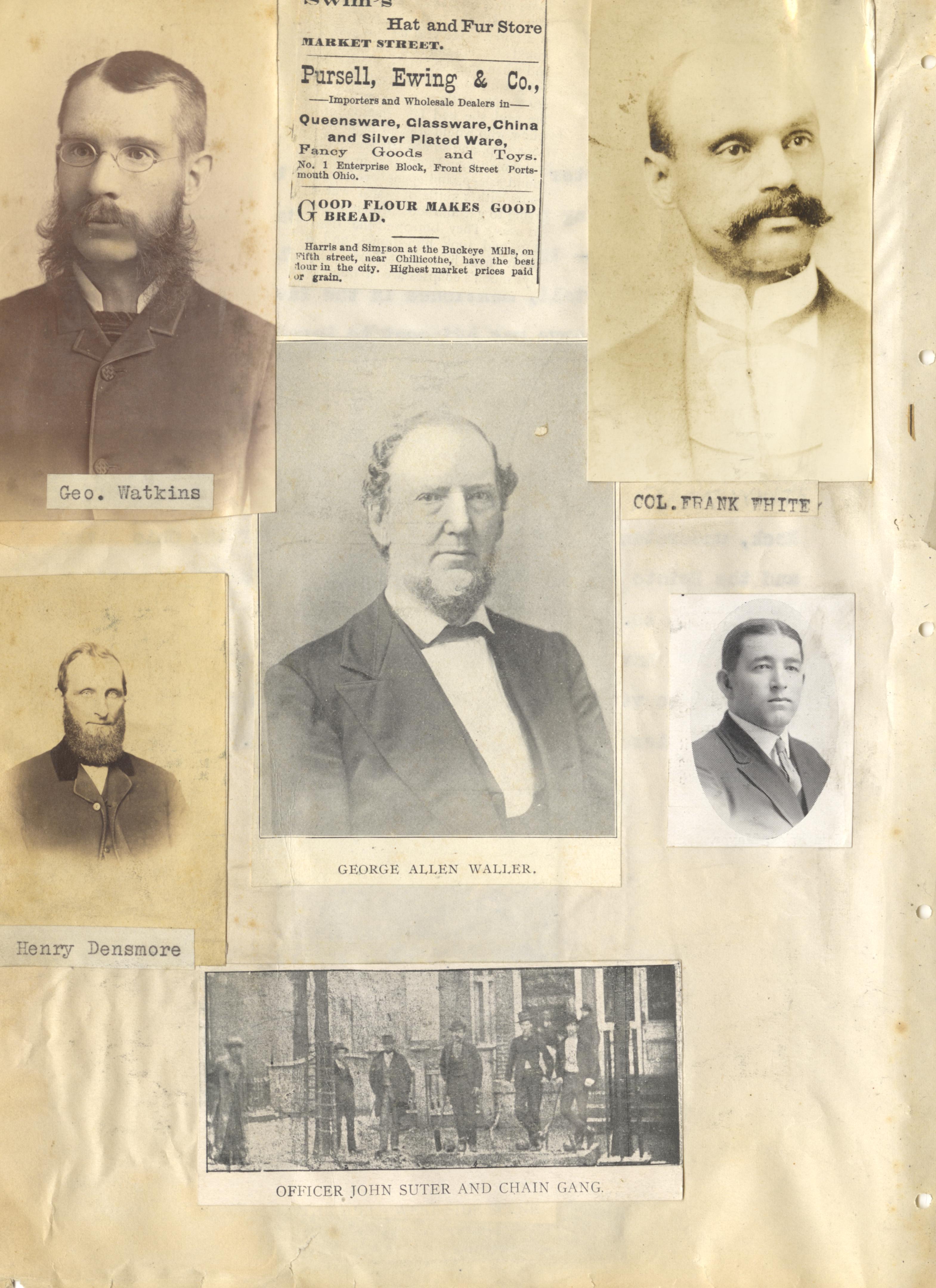 Henry A. Lorberg , “George Watkins; George Allen Waller; Col. Frank White; Henry Densmore; Officer John Suter and Chain Gang,” Scioto County Public Library Local History Digital Collection, accessed December 13, 2025, https://www.sciotolibrary.org/history/items/show/22412.