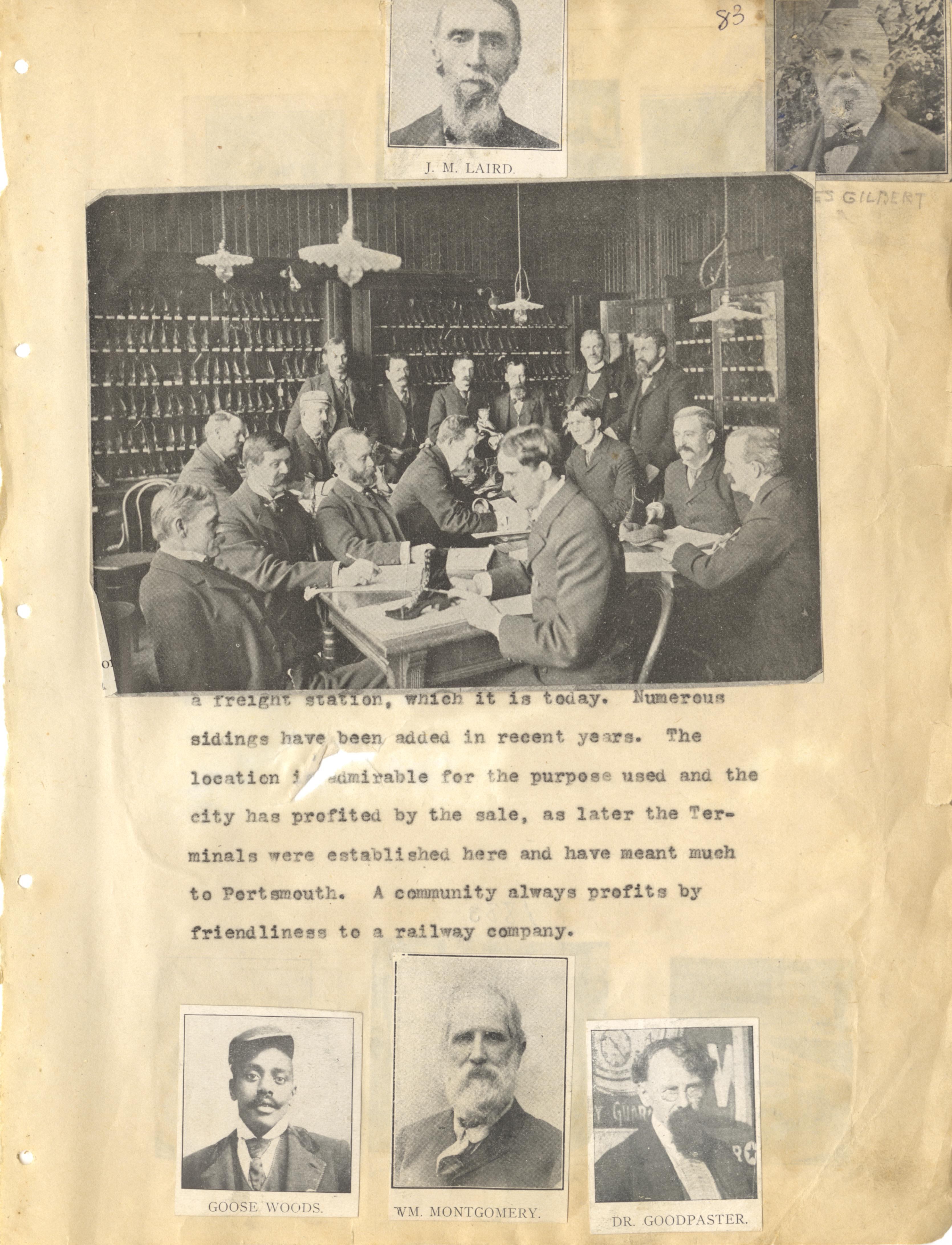 - Photo image of scanned scrapbook page. Pictured: Unknown group of men; J. M. Laird; Giles Gilbert; Goose Woods; William Montgomery; Dr. Goodpaster