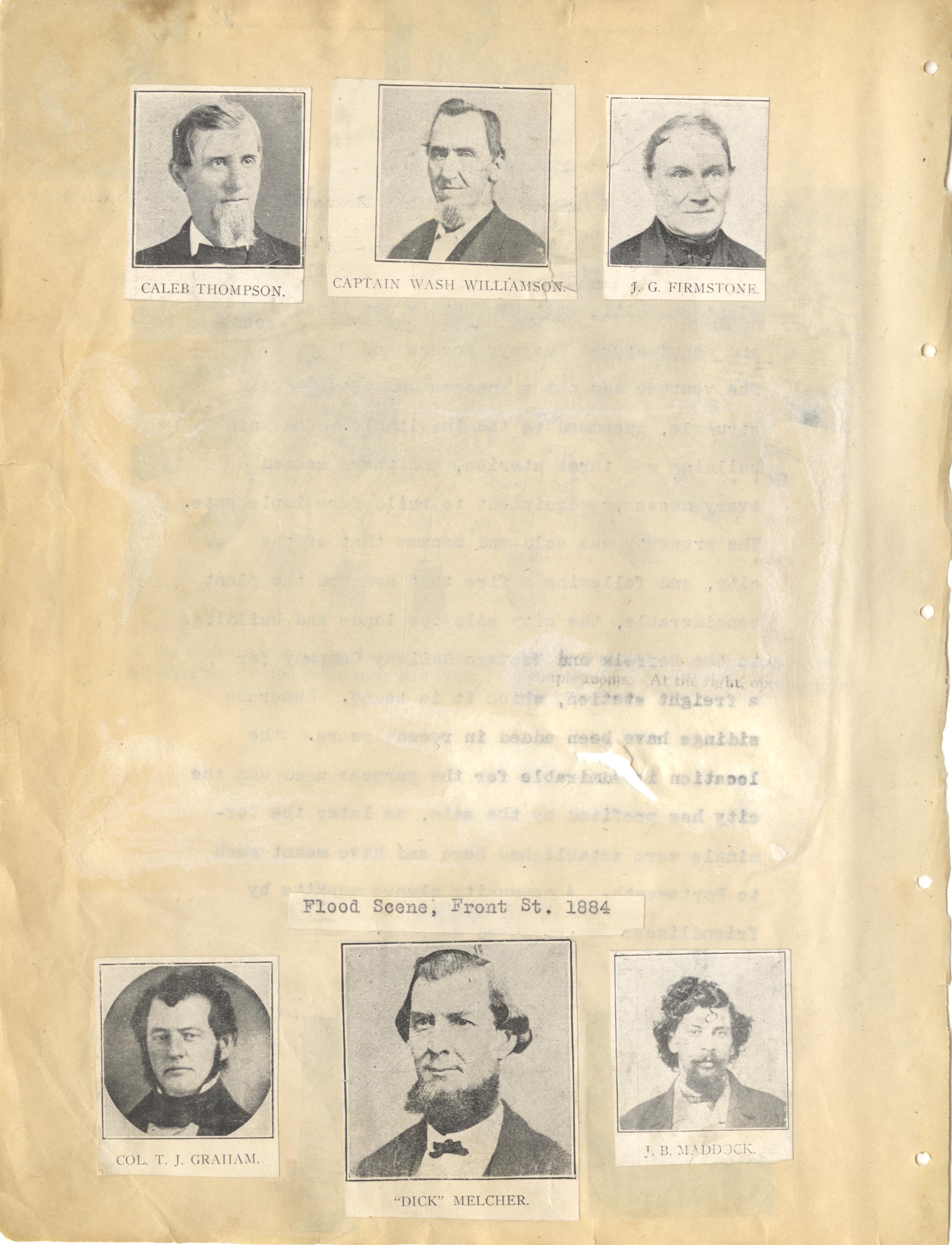 - Photo image of scanned scrapbook page. Pictured: Caleb Thompson; Captain Wash. Williamson; J. G. Firmstone; Col. T. J. Graham; "Dick" Melcher; J. B. Maddock