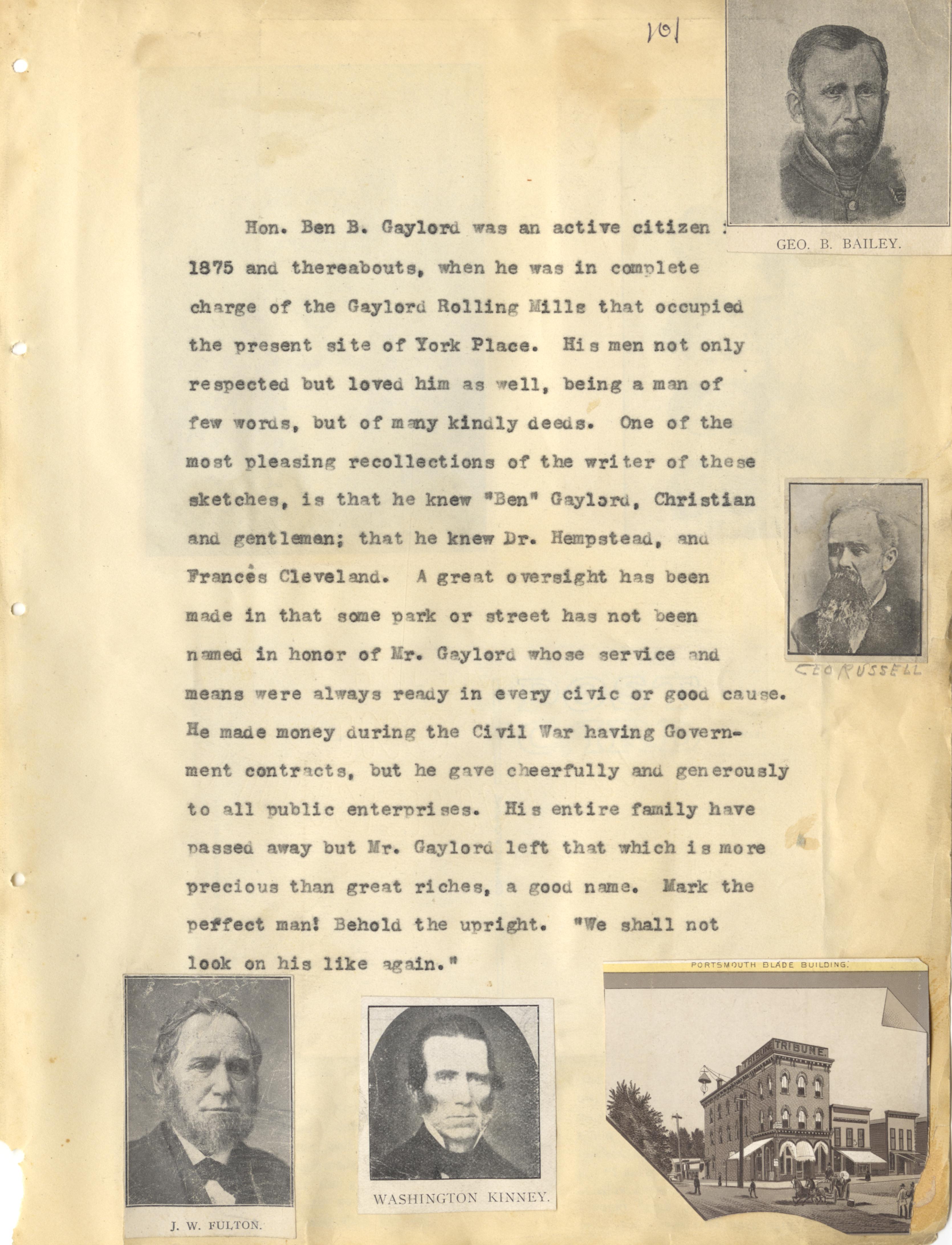 - Photo image of scanned scrapbook page. Pictured: George B. Bailey; George Russell; J. W. Fulton; Washington Kinney; Portsmouth Blade Building