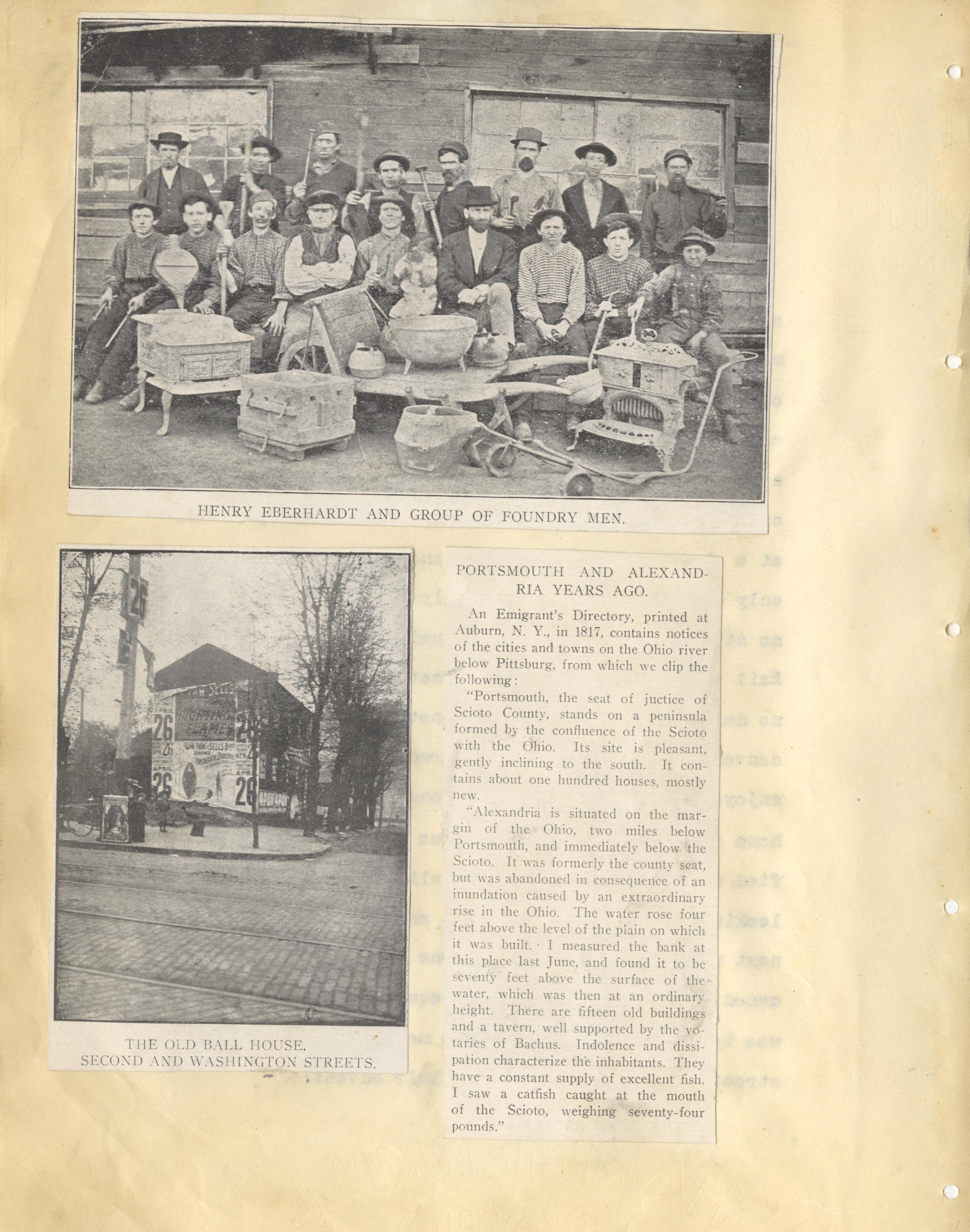 - Photo image of scanned scrapbook page. Pictured is Henry Eberhardt and Group of Foundry Men; The Old Hall House, Second (2nd) and Washington Streets; Newspaper Article Portsmouth and Alexandria Years Ago
