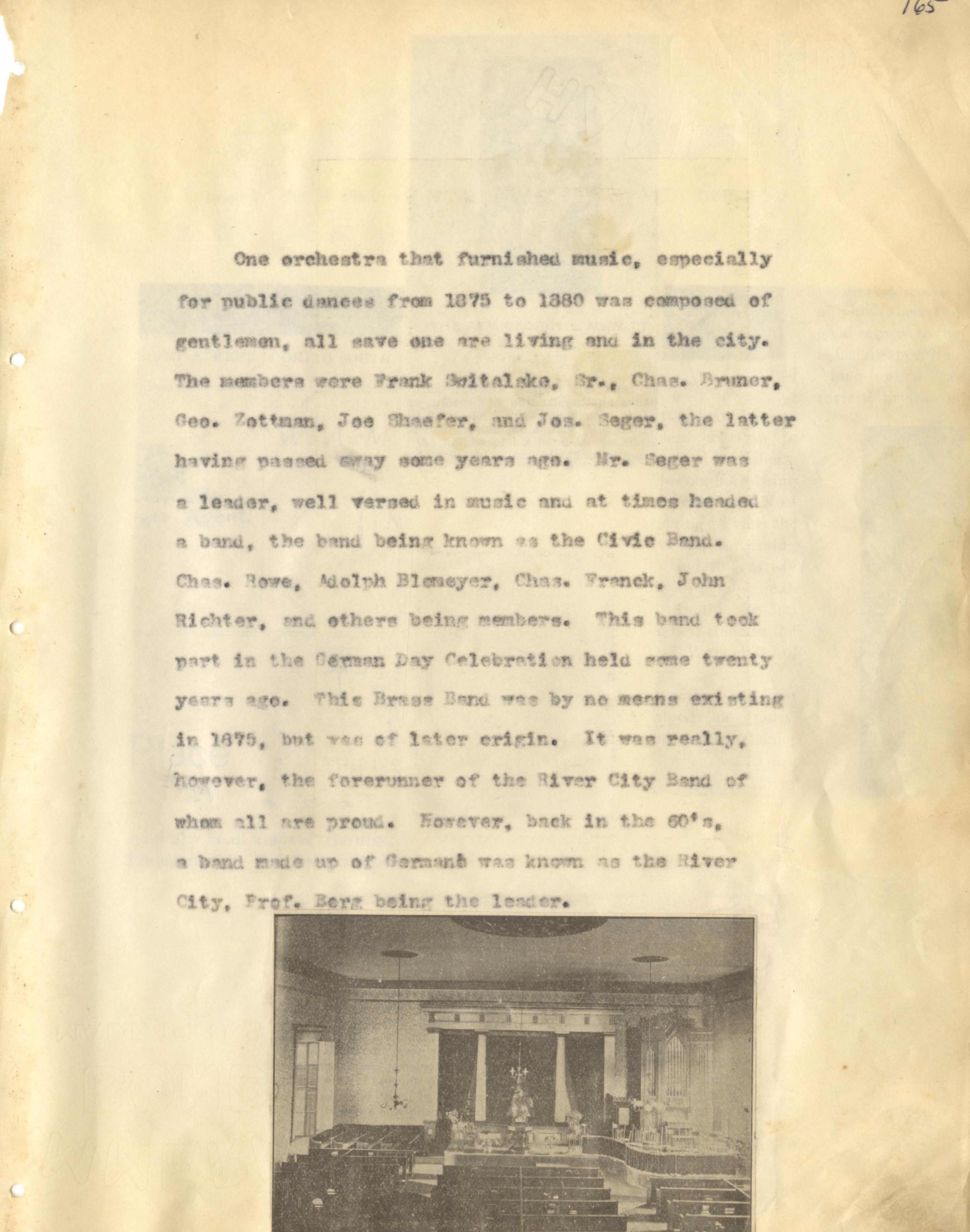 - Photo image of scanned scrapbook page. Pictured is a typed page giving information about a local band in Portsmouth that played from 1875 to 1880.