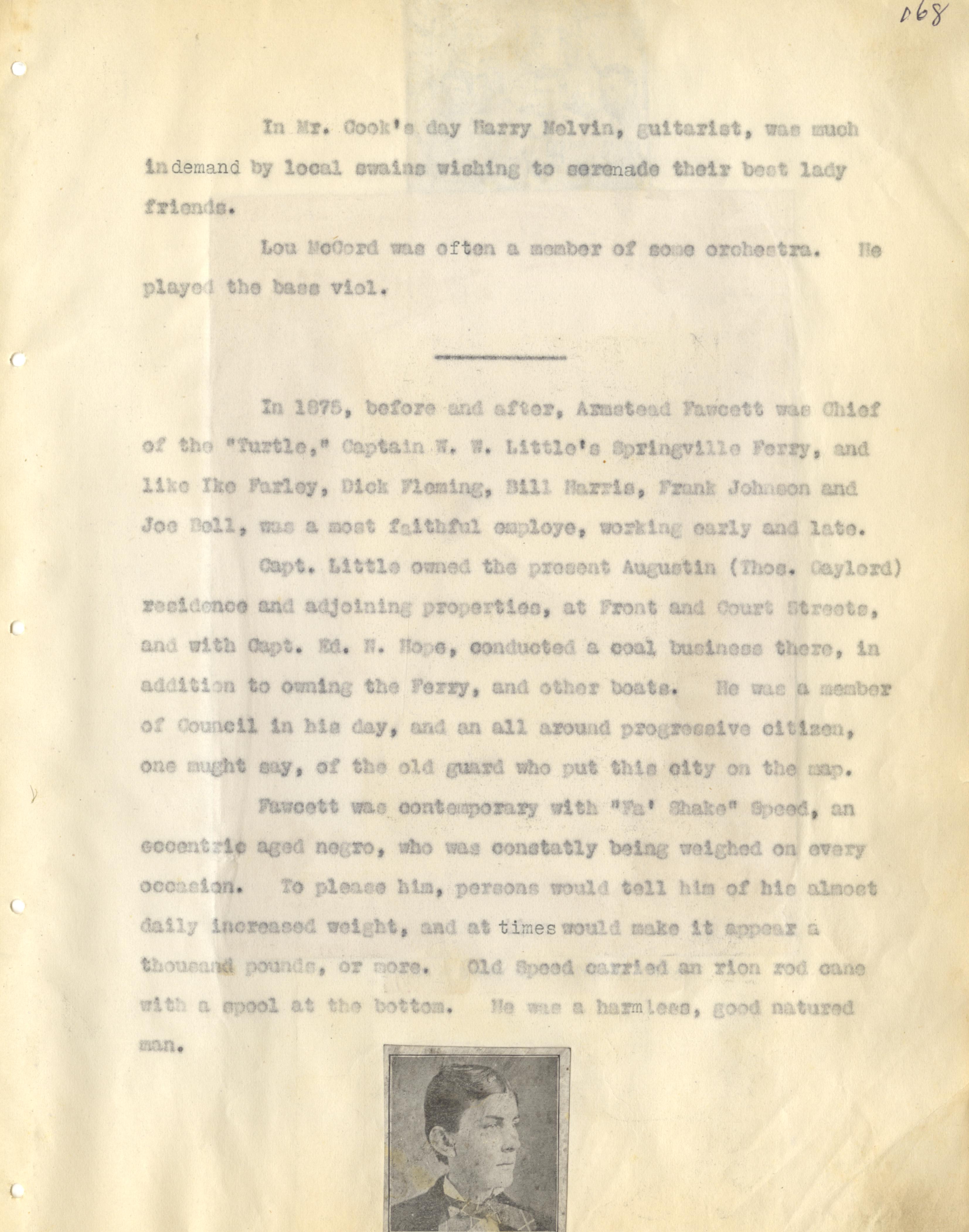 - Photo image of scanned scrapbook page. Pictured: typed page with information about Captain W. W. Little