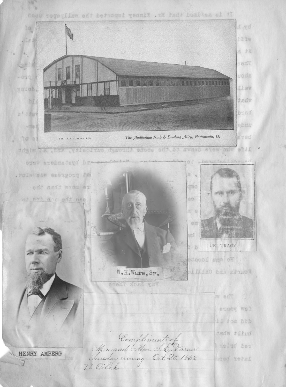 Henry A. Lorberg, “Auditorium Rink & Bowling Alley; Uri Tracy; W.H. Ware Sr.; Henry Amberg,” Scioto County Public Library Local History Digital Collection, accessed December 5, 2025, https://www.sciotolibrary.org/history/items/show/2279.