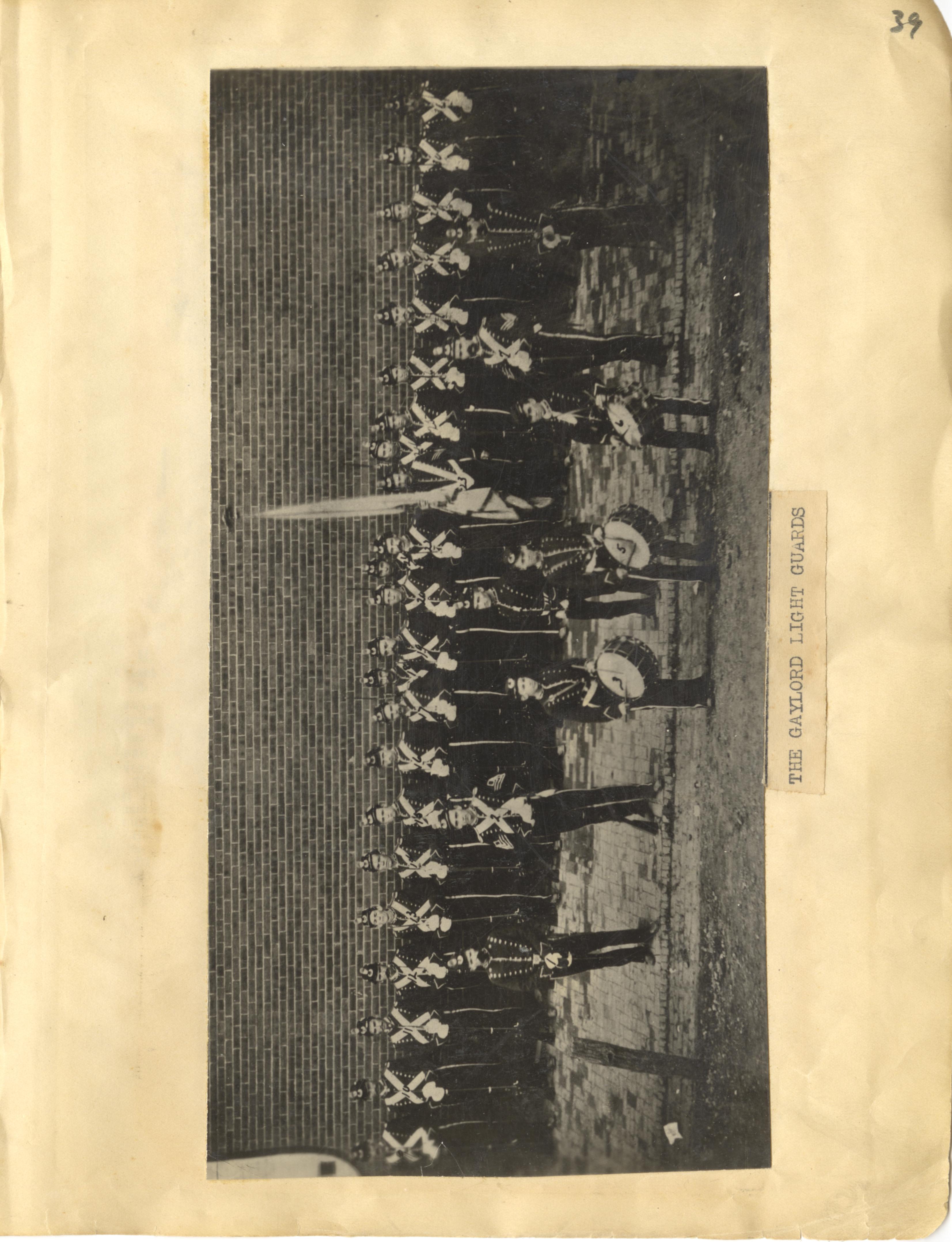 - Photo image of scanned scrapbook page. Pictured: black and white photograph of the Gaylord Light Guards