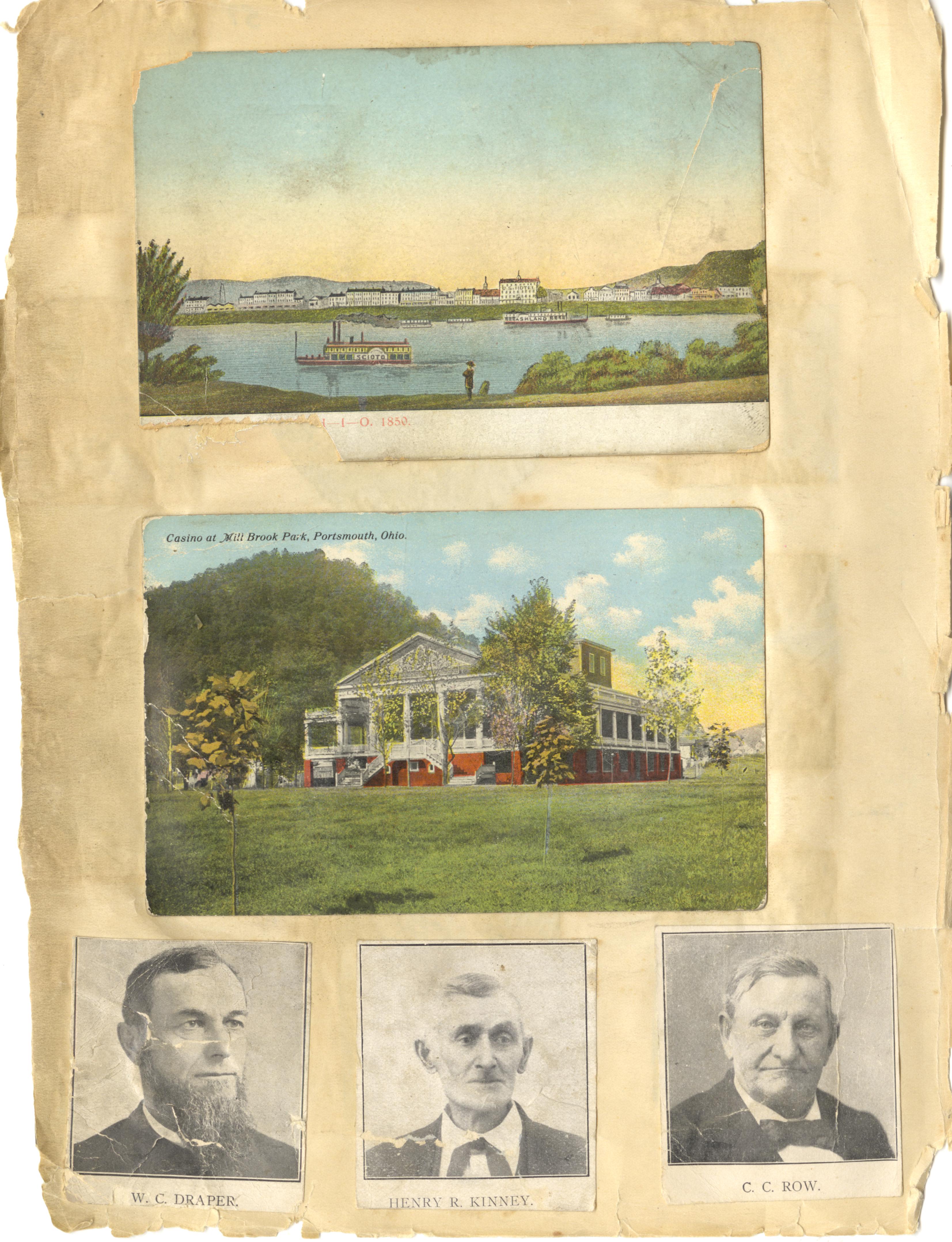 - Photo image of scanned scrapbook page. Pictured: Portsmouth, Ohio (1850); Casino at Millbrook Park; W. C. Draper; Henry R. Kinney; C. C. Row