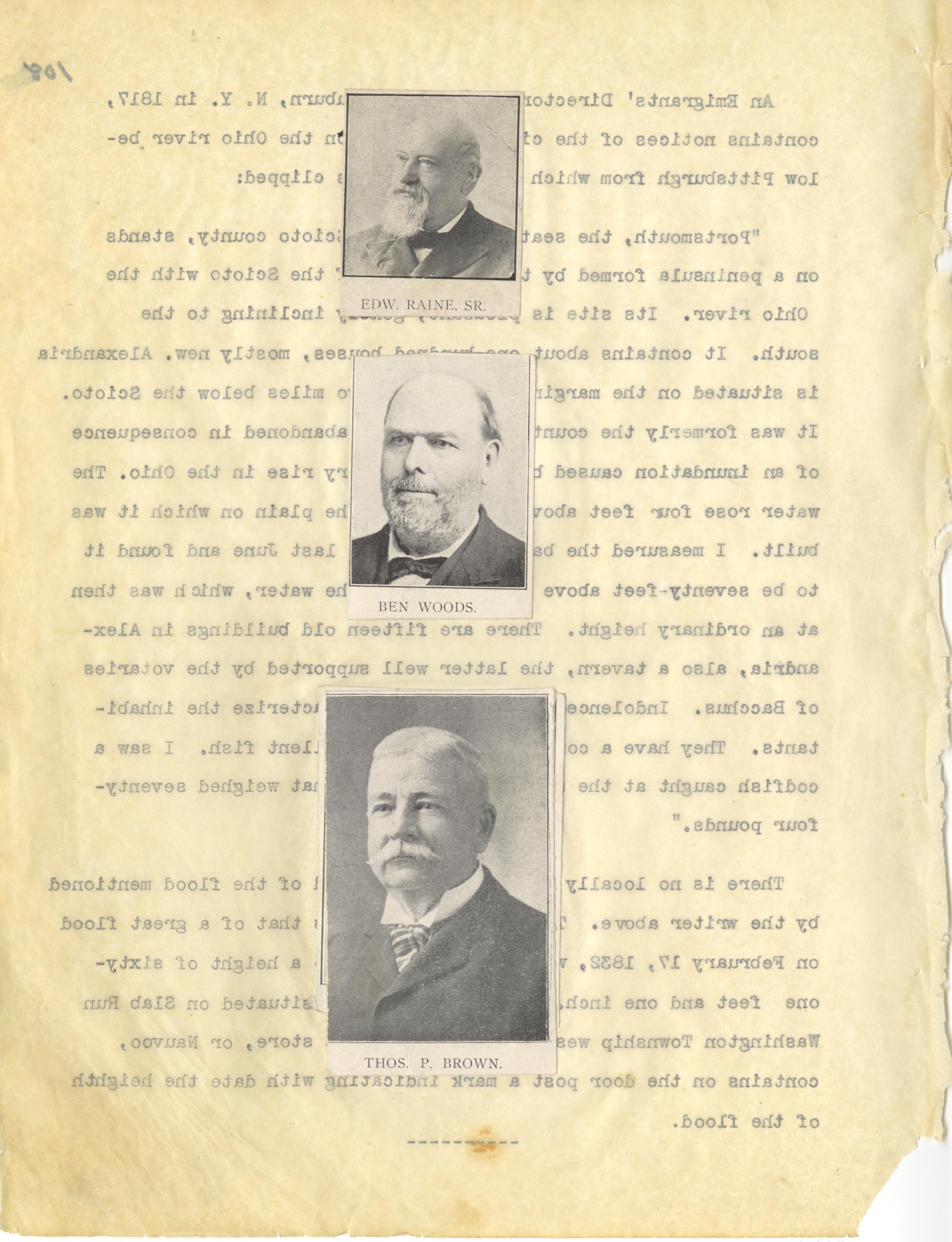 - Photo image of scanned scrapbook page. Pictured: Edward Raine Sr.; Ben Woods; Thomas P. Brown