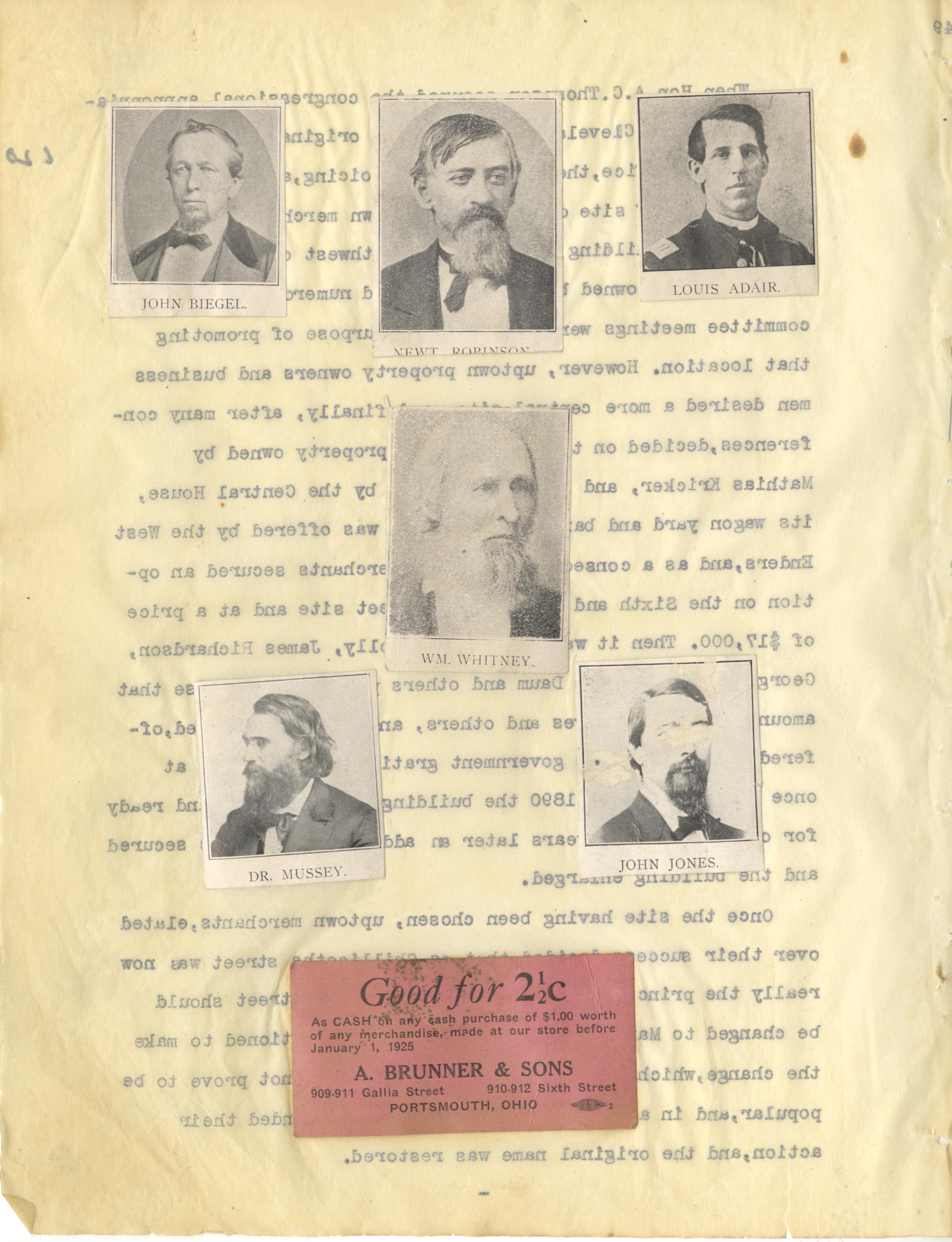Henry A. Lorberg , “John Biegel; Newt Robinson; Louis Adair; William Whitney; Dr. Mussey; John Jones; A. Brunner & Sons Card,” Scioto County Public Library Local History Digital Collection, accessed December 8, 2025, https://www.sciotolibrary.org/history/items/show/22973.