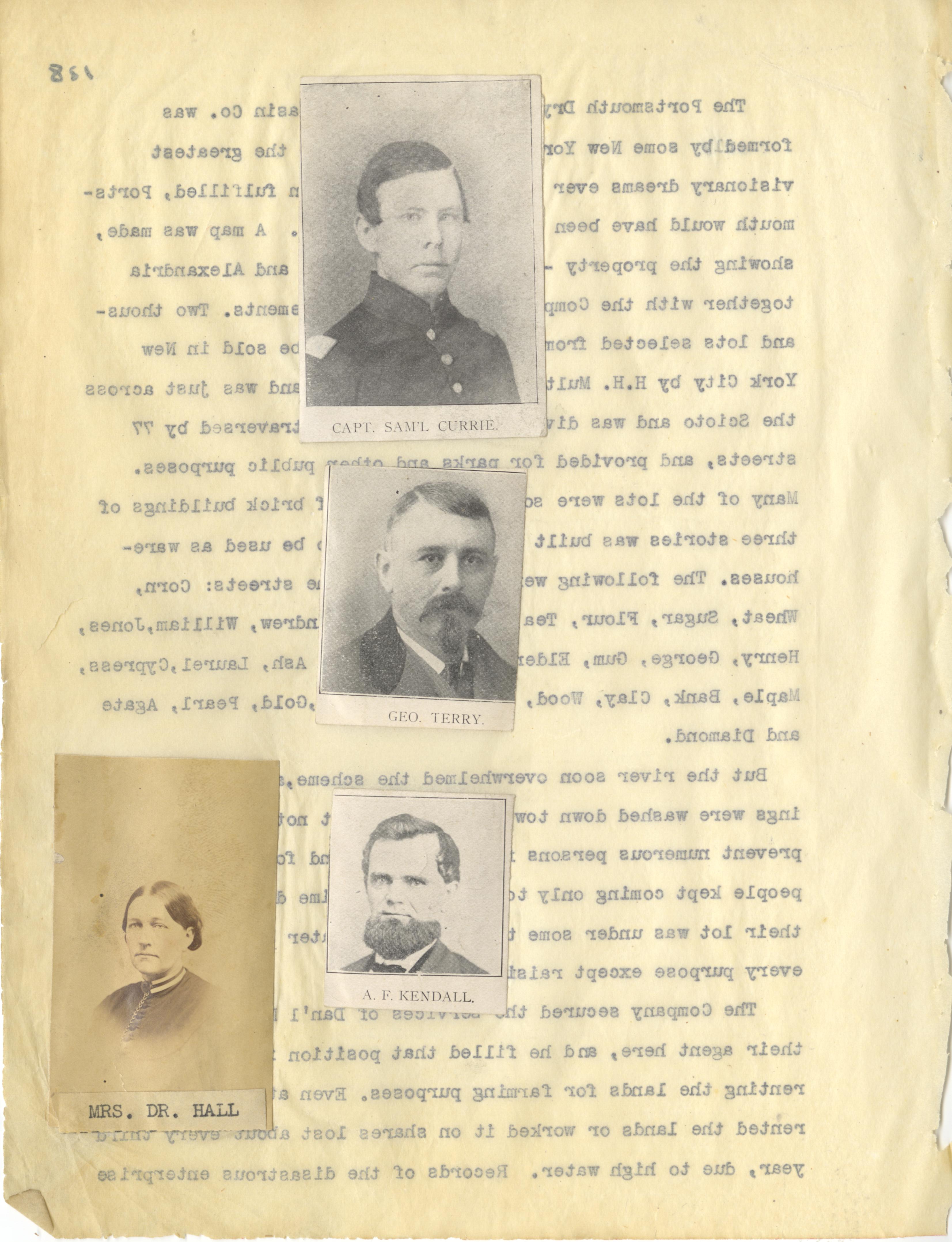 - Photo image of scanned scrapbook page. Pictured: Capt. Sam'l Currie; George Terry; A. F. Kendall; Mrs. Dr. Hall