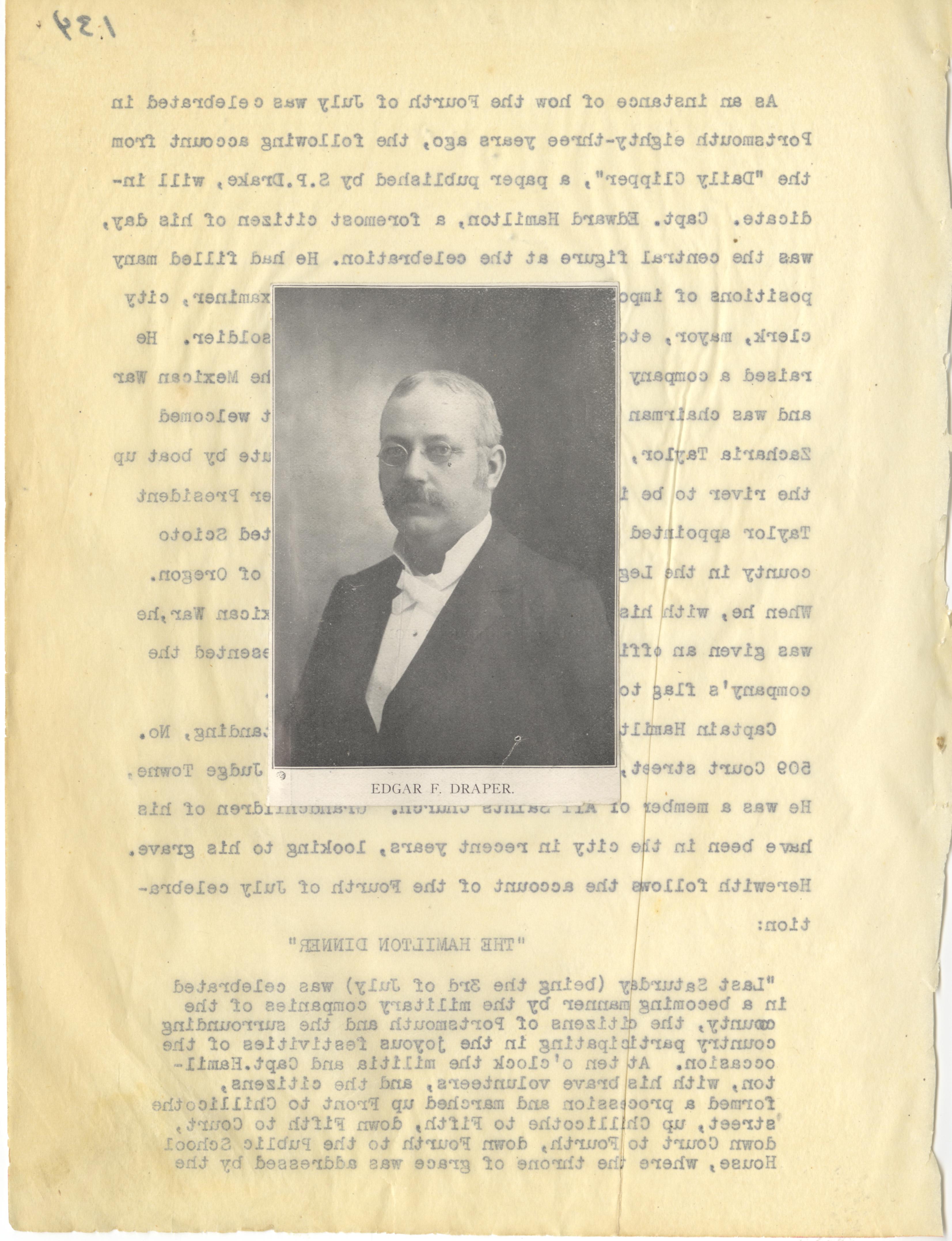 - Photo image of scanned scrapbook page. Pictured: Edgar F. Draper