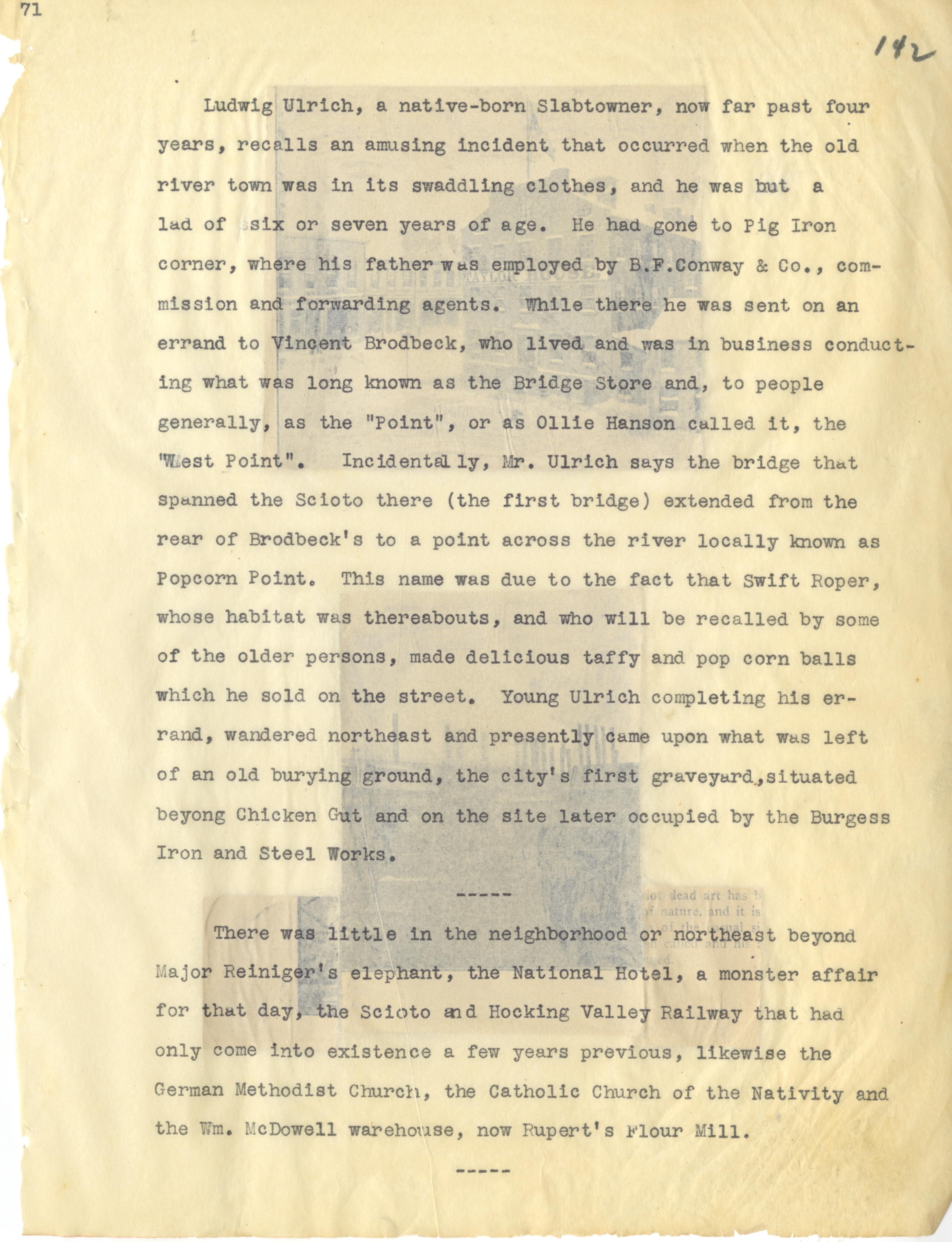 Henry A. Lorberg , “Incident recounted by Ludwig Ulrich; the Neighborhood in the northeast part of the city,” Scioto County Public Library Local History Digital Collection, accessed December 16, 2025, https://www.sciotolibrary.org/history/items/show/23014.